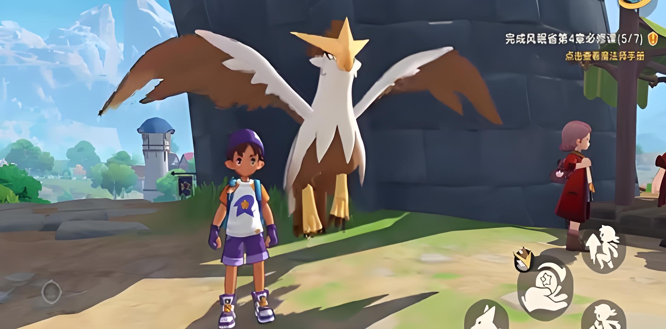 1、捕捉皇家獅鷲需打開地圖找到魔法之家,向右側滑動屏幕點擊港口駐地圖標傳送,原地旋轉視角抬頭觀察,待其體力耗盡落地后靠近捕捉。