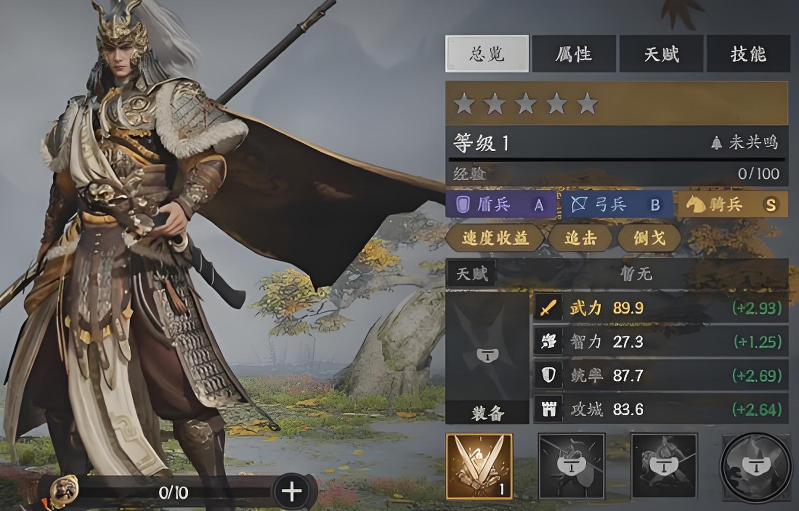 3、自身閃避屬性突出且契合騎兵高機動性,能在戰場上靈活穿梭規避集火,攻守兼備的特點使其在多種陣容體系中都有合適位置。