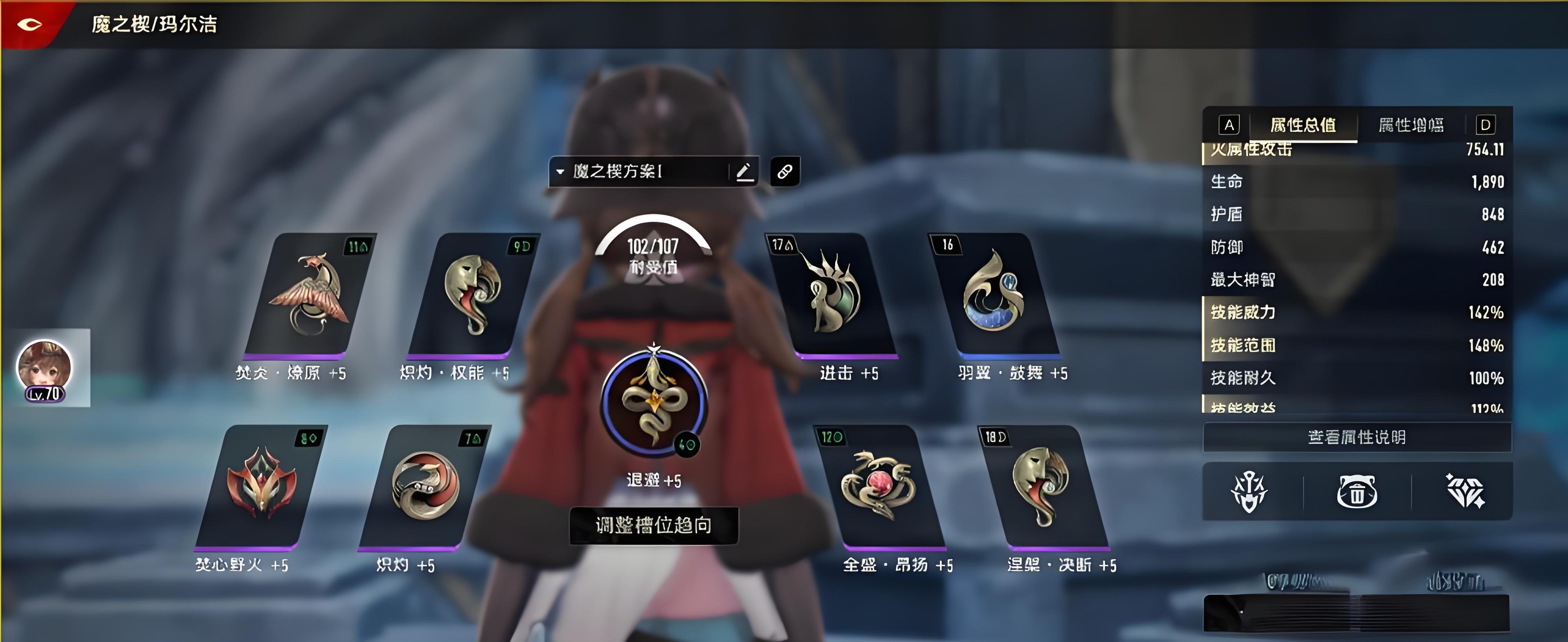1、必選配卡焚炎燎原能大幅提升火屬性范圍傷害,契合瑪爾潔高傷害特點,是放大核心輸出能力的關鍵選擇。