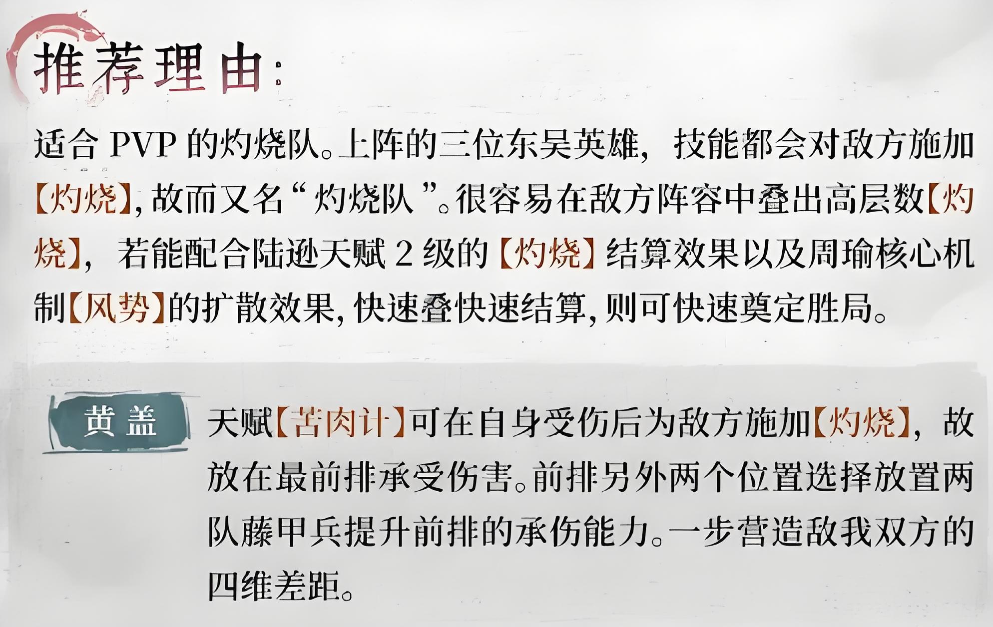 1、核心陣容包含三位東吳英雄,全員技能都能對敵方施加灼燒效果,容易疊加高層數灼燒,適配PVP對戰場景發揮持續壓制力。