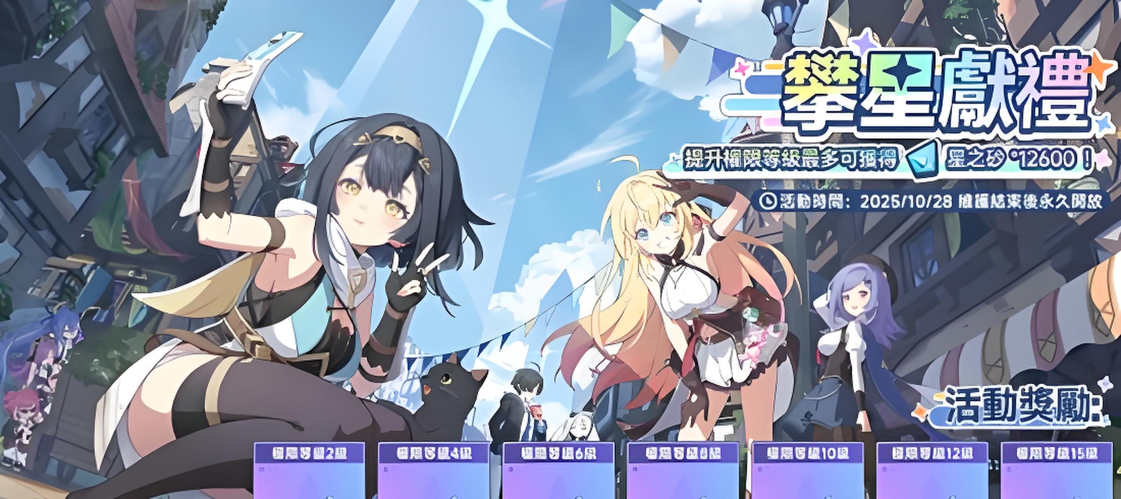 4、領取攀星獻禮,提升權限等級至指定階段即可領取星之砂,從二級到十五級共能獲得一萬二千六百星之砂,用于角色培養。