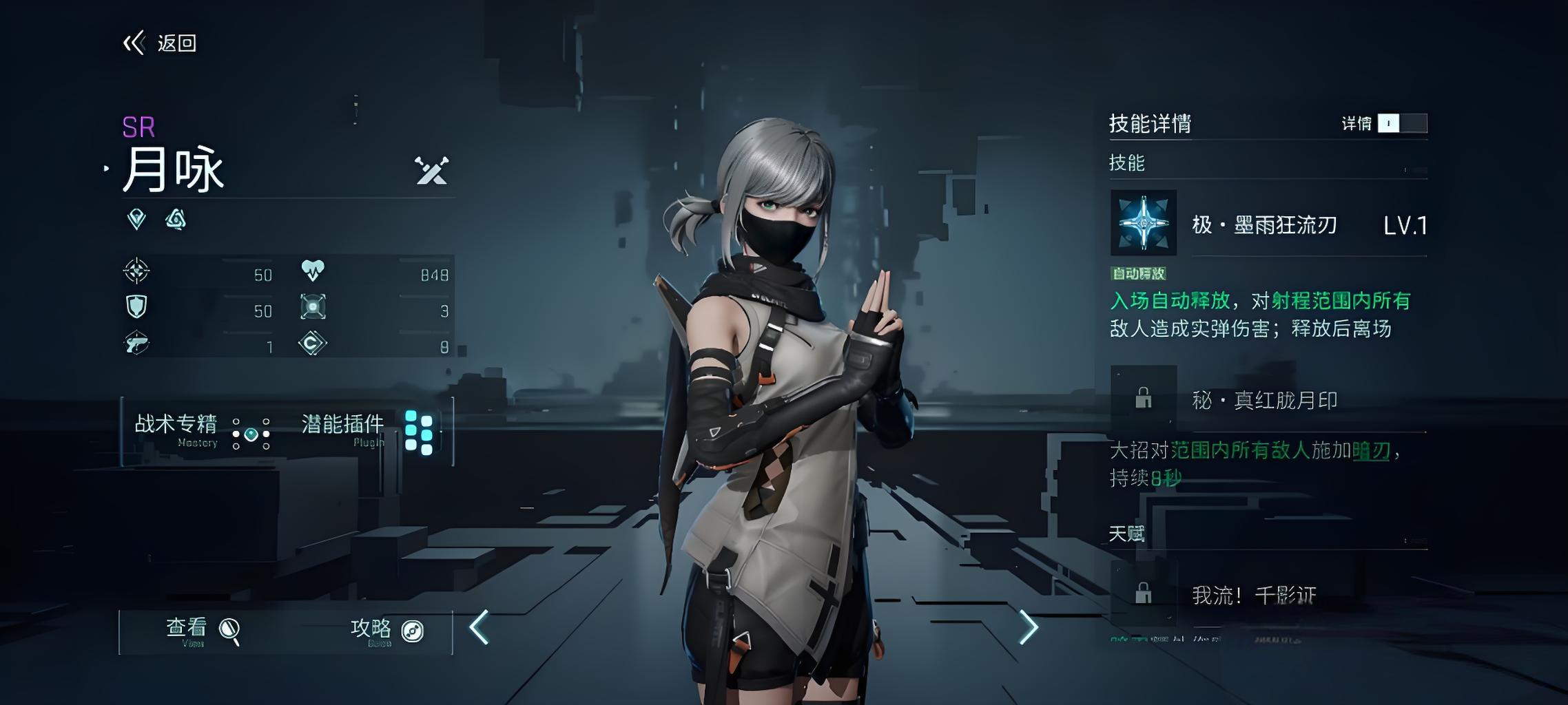 鐳明閃擊月詠是可招募的SR品質角色,所屬陣營兼具側擊優勢與召喚協同特性,因對角色個體能力要求較高,玩家需深入了解其技能效果強度玩法與實戰適配性,她作為群攻隱刃隊員側重范圍傷害與隊友聯動,本文整理其主動技能被動強化適配武器及陣容搭配,幫助大家掌握部署要點發揮群攻優勢提升戰斗勝率。