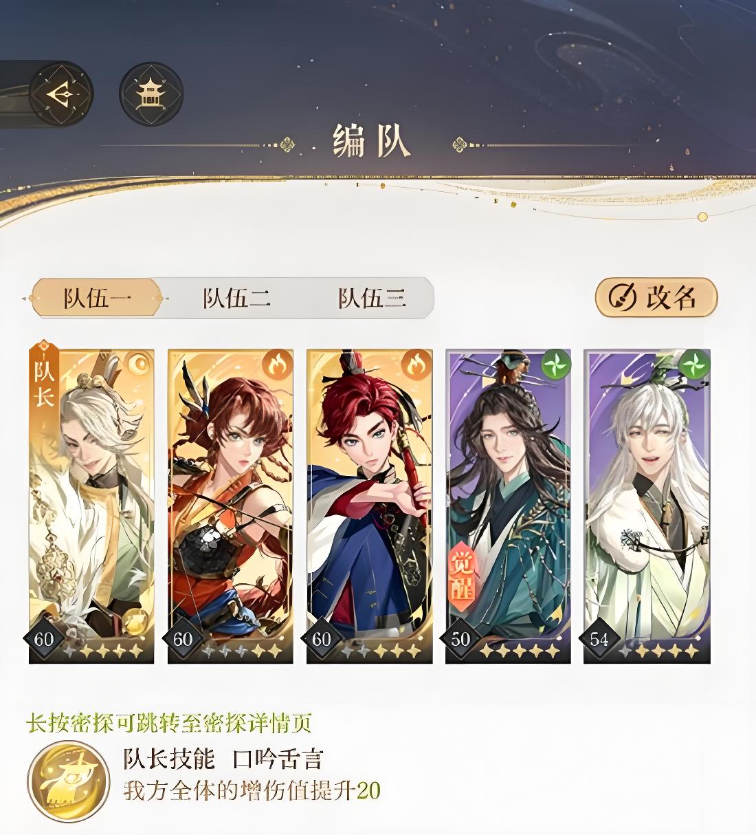 2、推薦楊修陳登香權組成隊伍,楊修擔任隊長提供20%增傷,這一對抗首領高回血機制至關重要不可缺少。