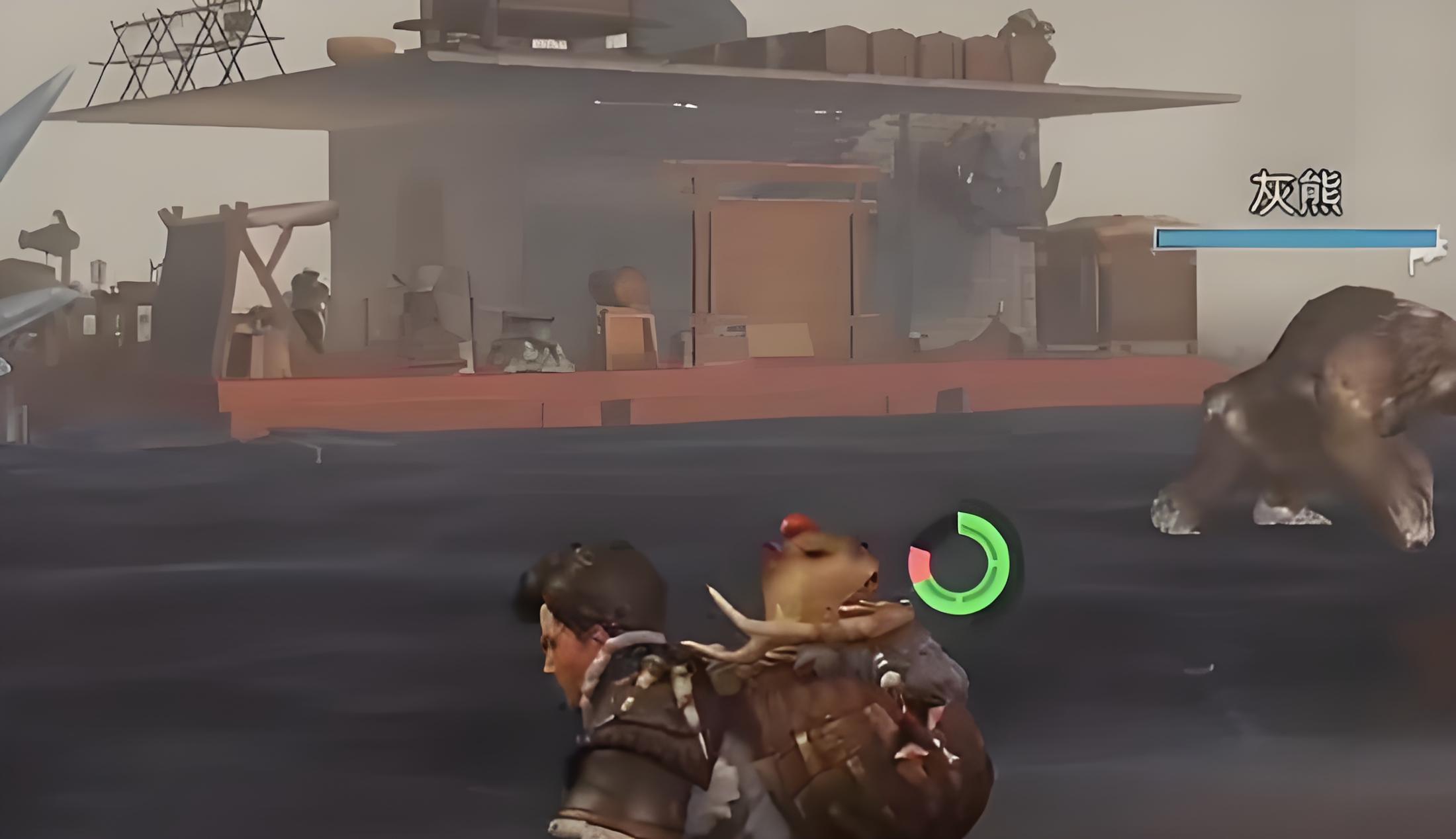 5、擊殺后可拾取熊肉熊皮及利爪,熊肉烤制后維持長時間飽食度,熊皮可制保暖護具提升雪原耐寒屬性。