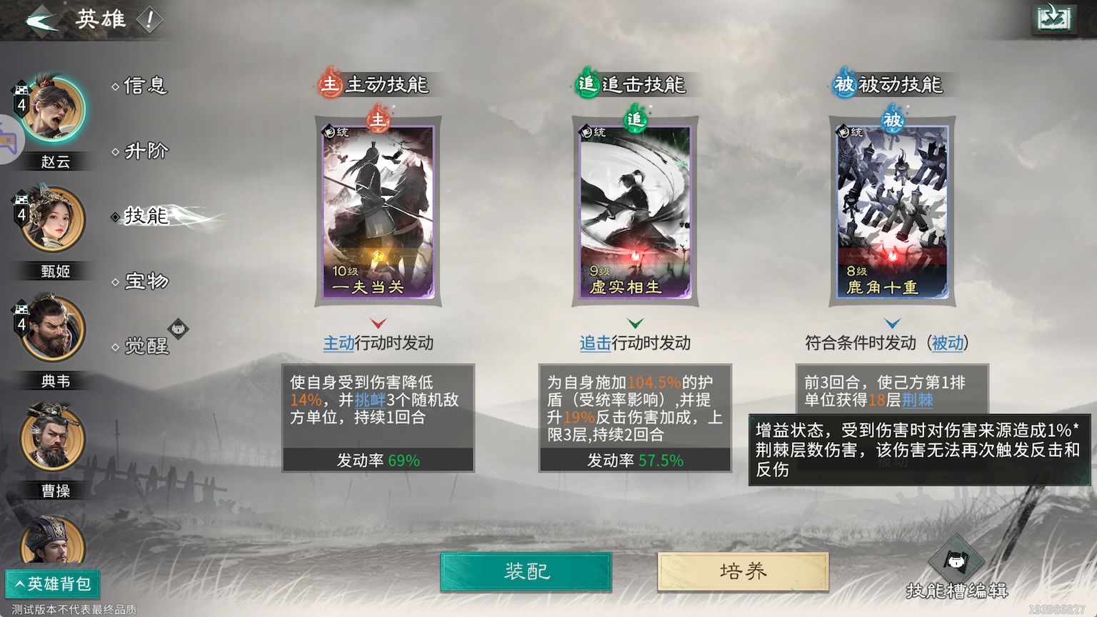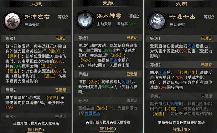2、典韋靠折沖左右天賦全程保護趙云,兩人緊密協同觸發反擊效果,甄姬天賦持續為趙云回血并提升閃避概率。