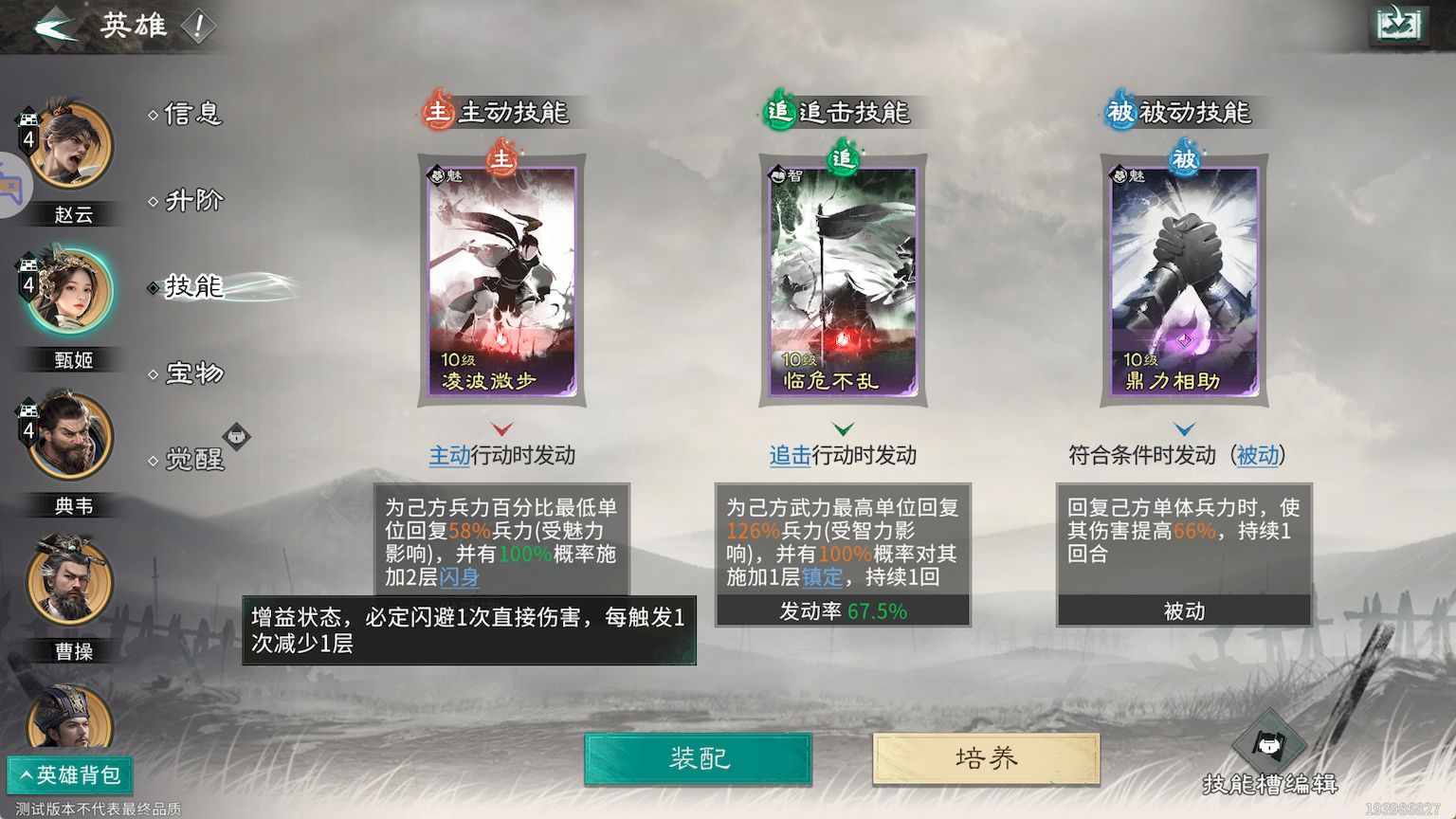 3、甄姬帶凌波微步臨危不亂鼎力相助,定向為趙云回血免控增傷,典韋攜技能大幅提升隊伍整體坦度。