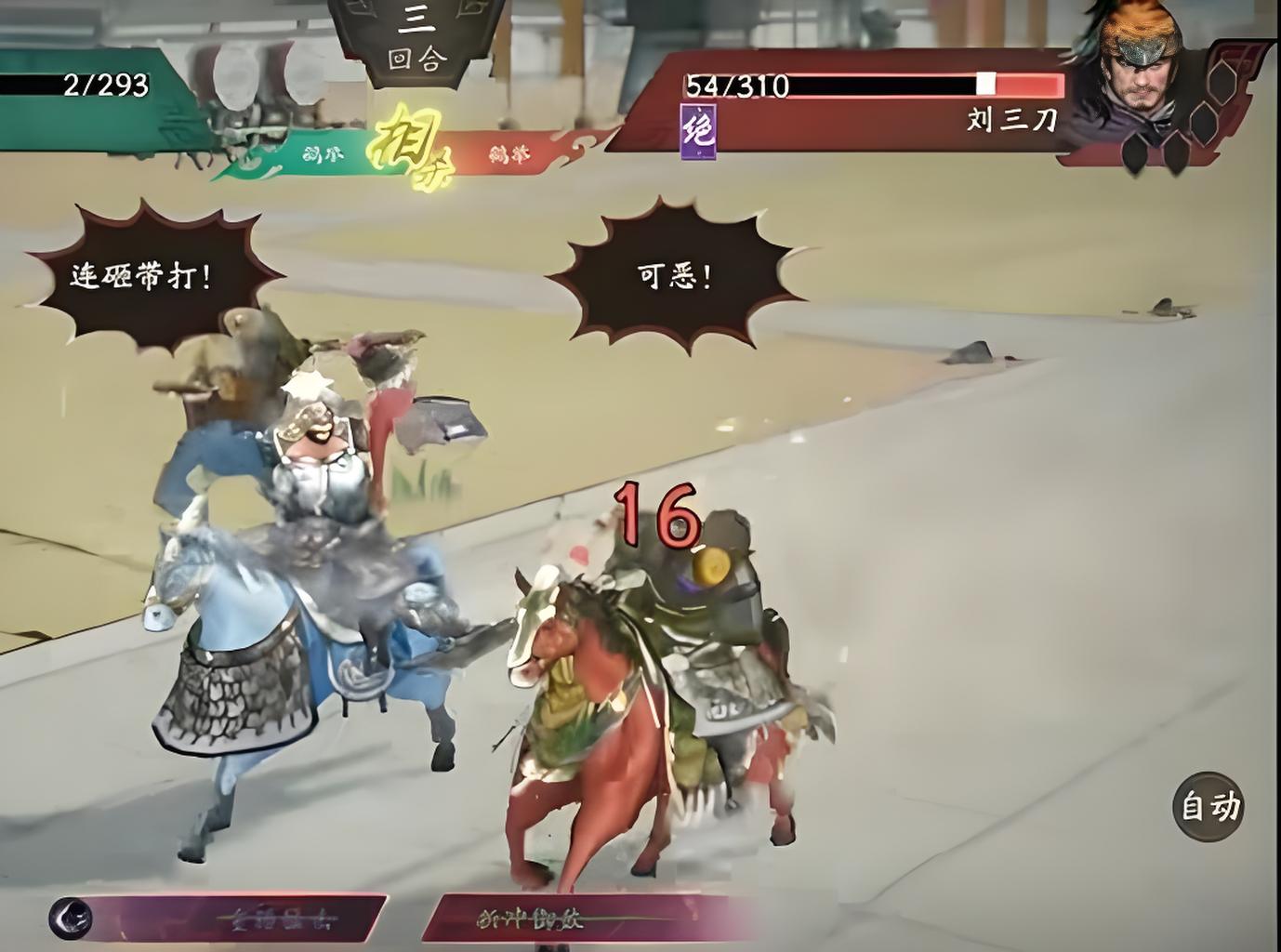 5、觀察劉三刀技能規律,趁其技能冷卻時輸出控制,利用車輪戰輪換機制,及時更換狀態不佳武將維持整體戰力。