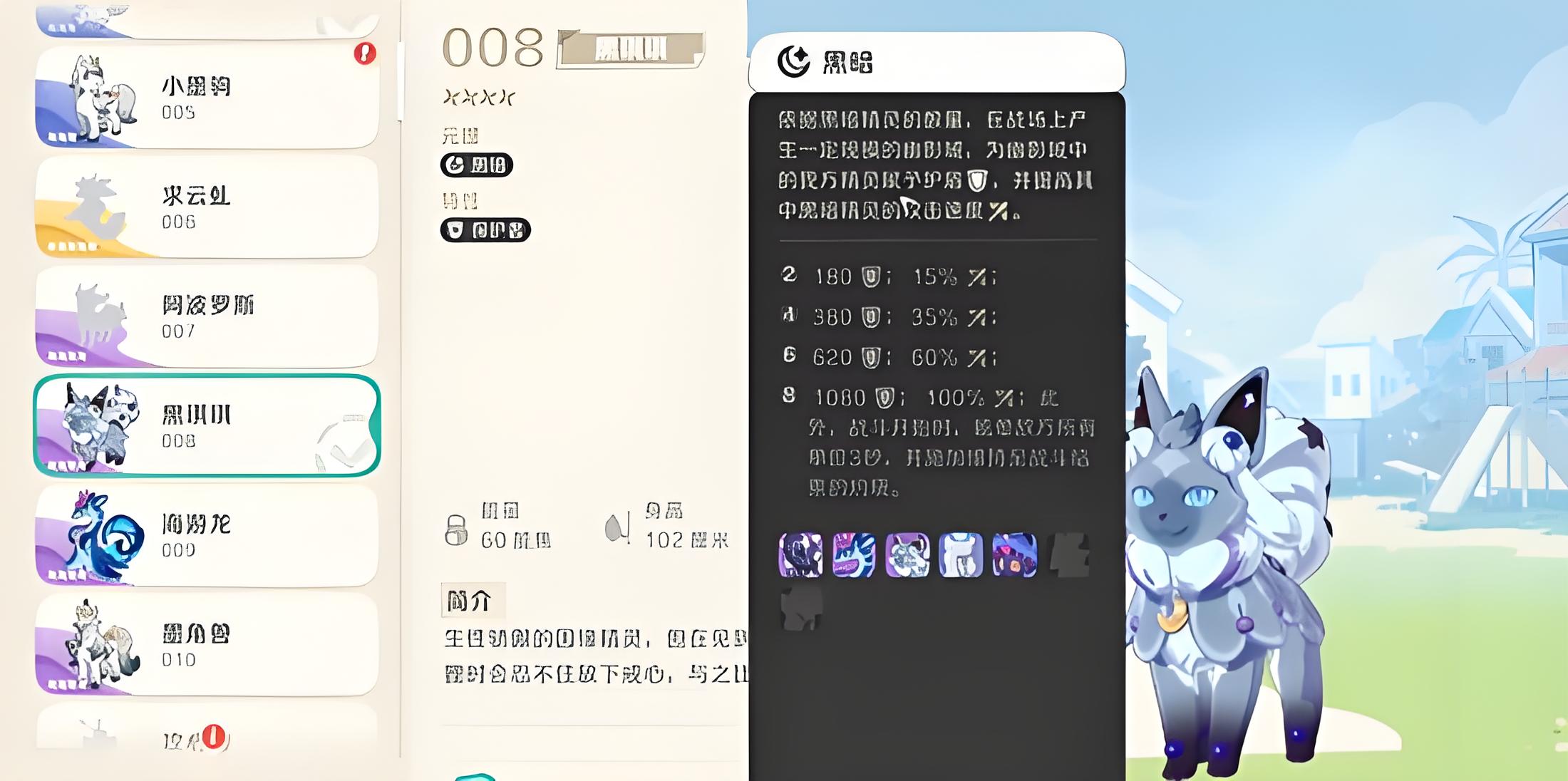 1、形象設計亮眼融合大尾巴狐貍元素配色以藍紫色與灰色為主,視覺呈現兼具神秘感與高貴氣質,黑暗元理歸屬讓角色風格鮮明獨特。