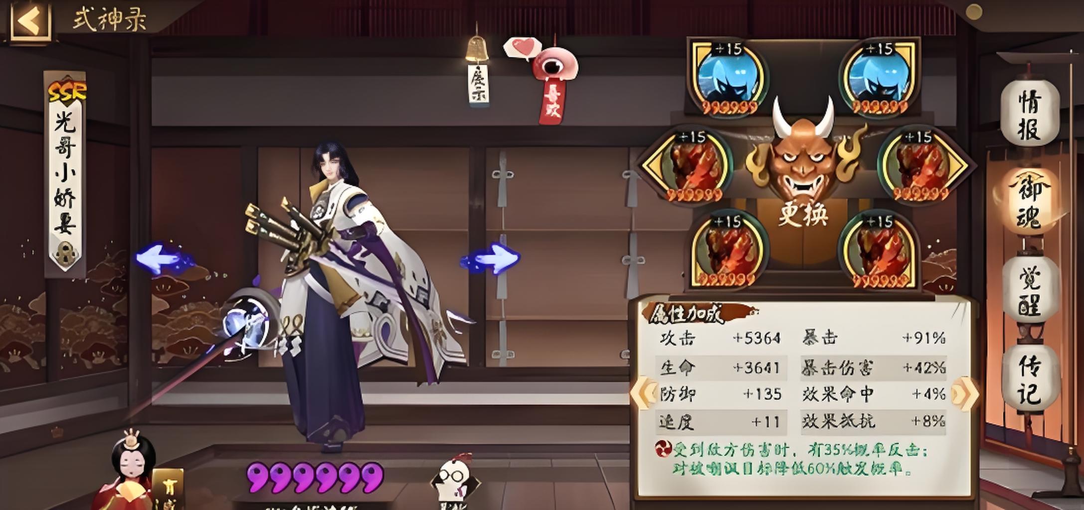 2、八百比丘尼全程標記鬼切確保生存,第一二回合鬼切與花鳥卷均用普攻,依靠鬼切猙御魂觸發反擊清掃敵人。