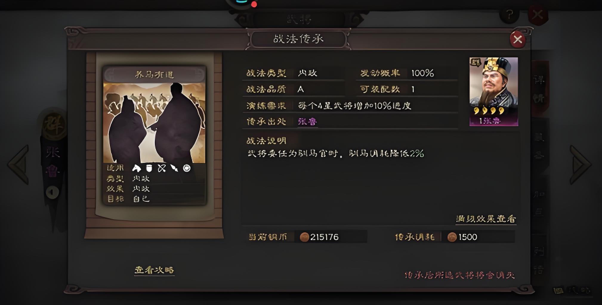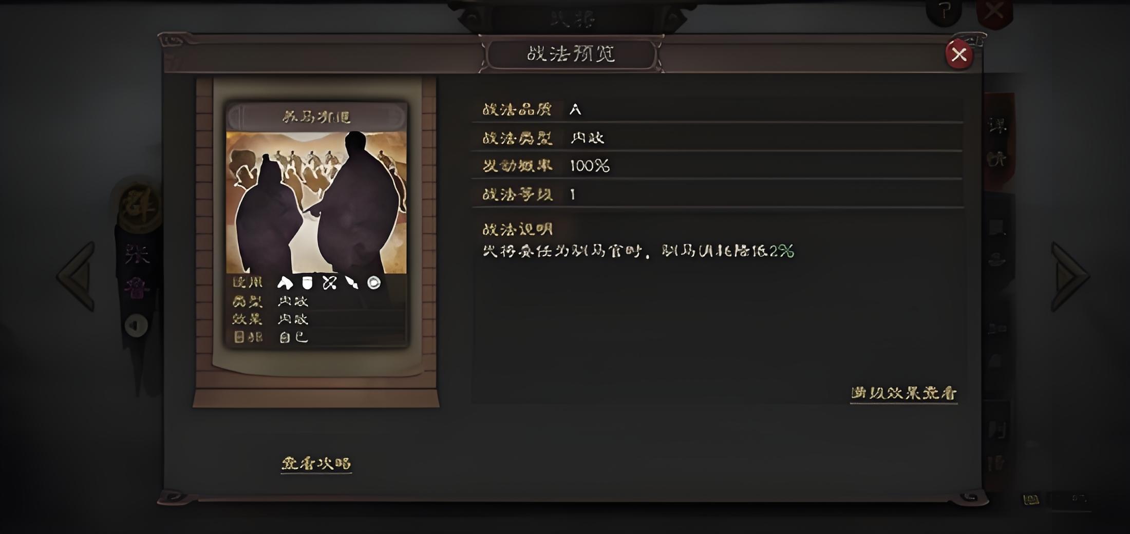 2、核心戰法養馬有道可降低敵方士氣消耗,減緩其出征效率,容易將戰斗拖入拉鋸局面,對戰時需避免陷入長時間消耗戰。