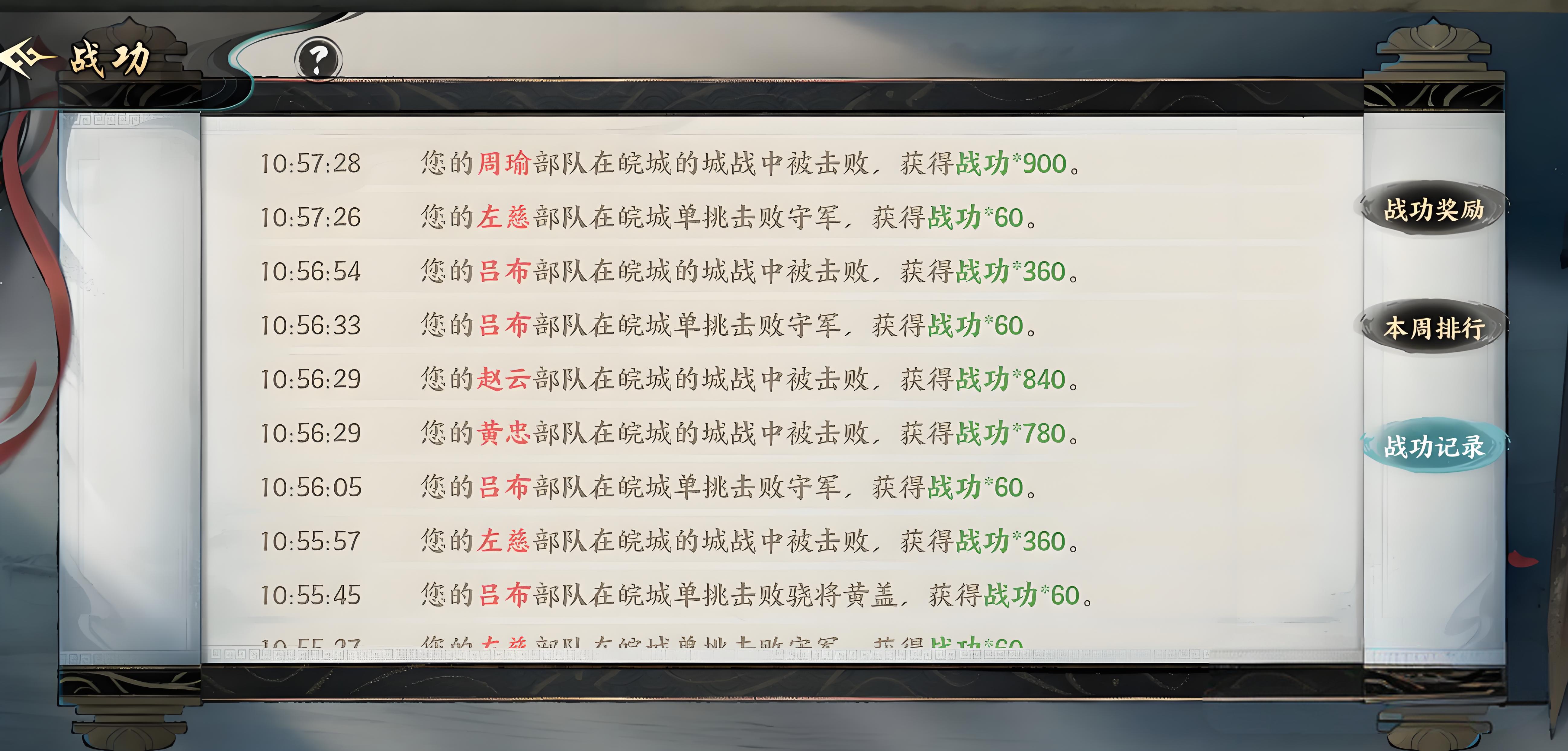 3、高戰力玩家可嘗試送死流戰術,派遣滿編部隊進攻高等級城池,單次可獲1800戰功且循環高效。