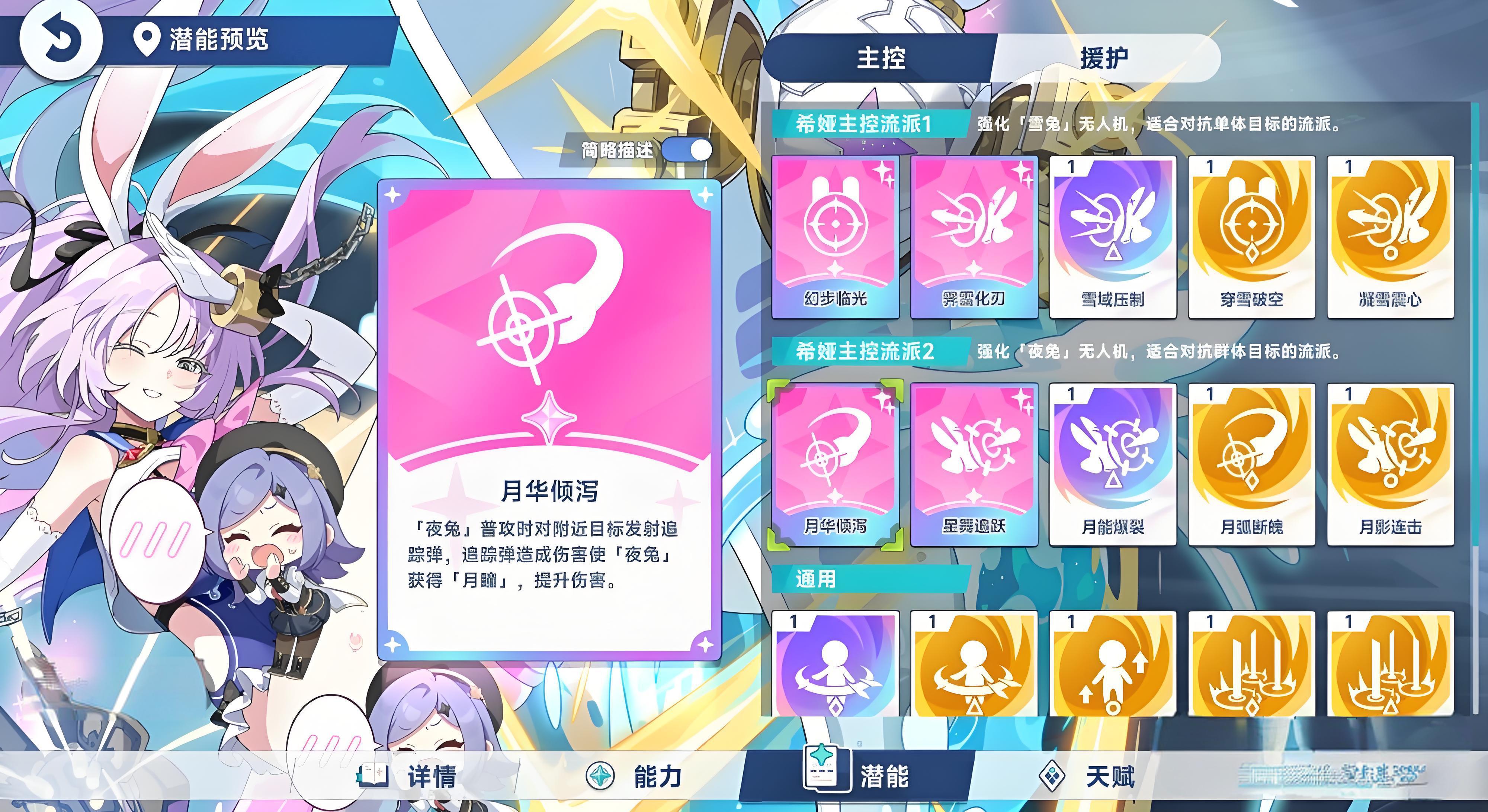 5、潛能分兩套流派,雪兔流強化單體輸出適合精英或BOSS戰,夜兔流偏向群體壓制應對復數敵人更具優勢。