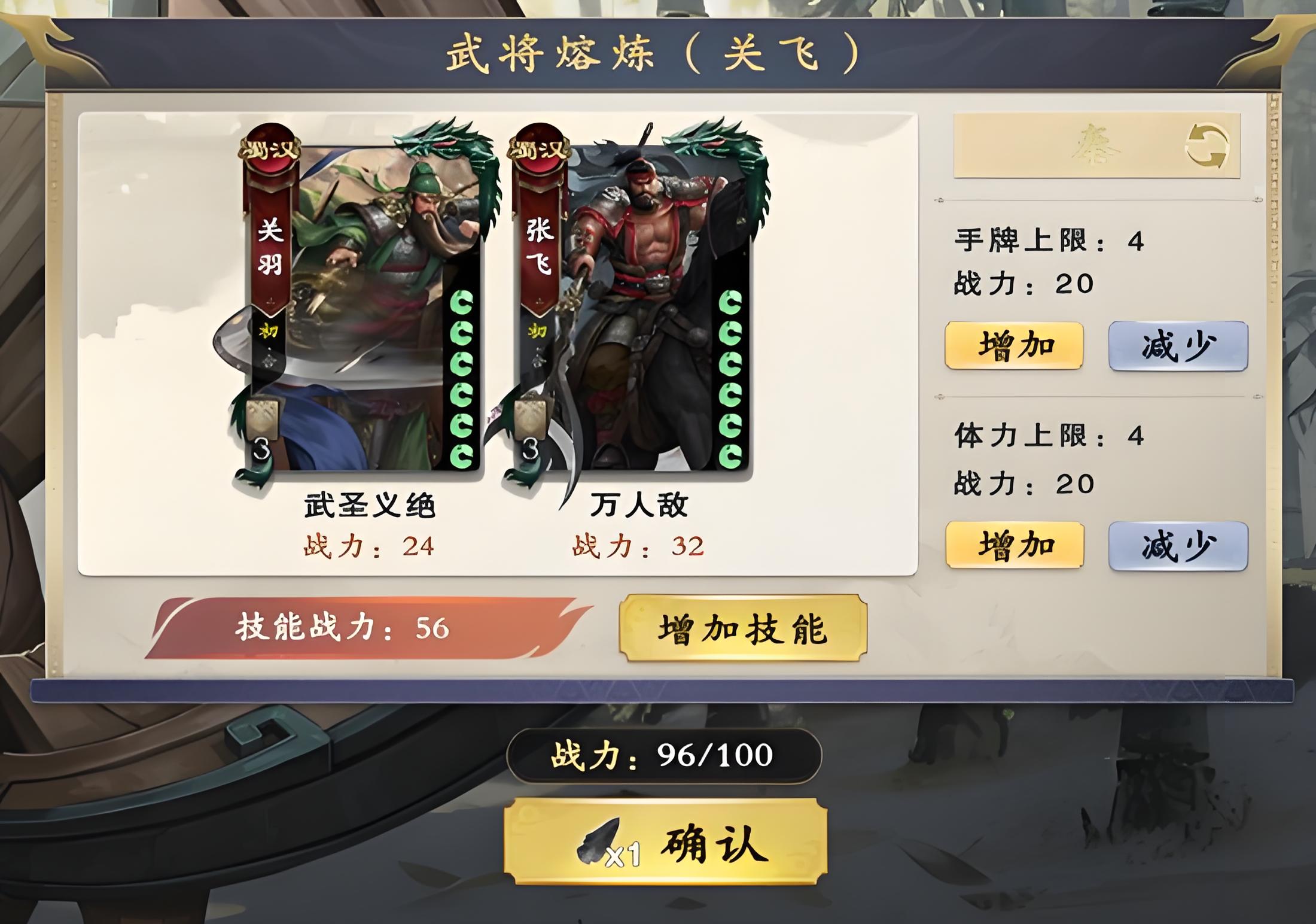 2、戰力設置嚴格限制總戰力值不超過100點,技能選取手牌上限調整體力上限提升均會占用戰力需合理分配。
