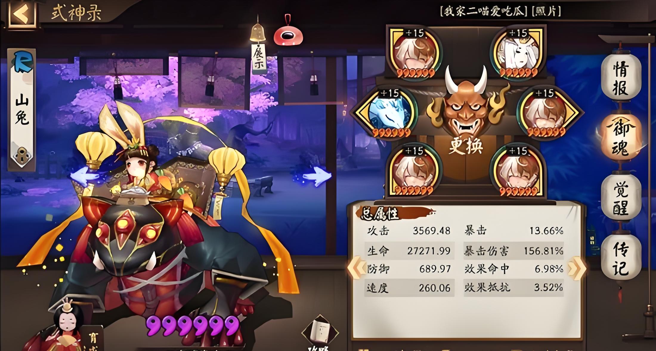4、須佐之男可通過平安京秘卷向同行借用,神墮八岐大蛇能在喚妖借處獲取,山兔和座敷童子需重點堆加生命屬性提升生存能力。