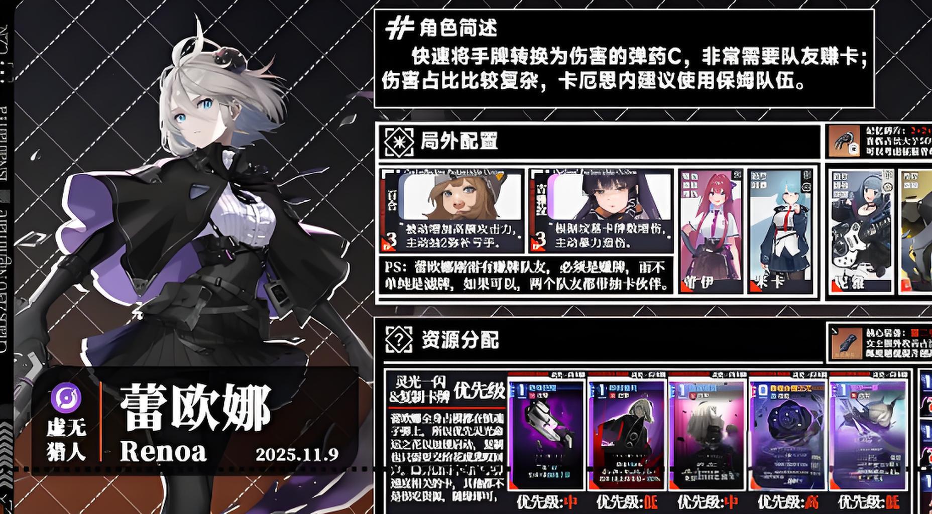5、前期積累鎮魂子彈后期集中爆發,起手優先使用核心技能儲備資源,隊友選賺卡或提升檢索效率輔助,雙隊友帶抽卡伙伴最優。