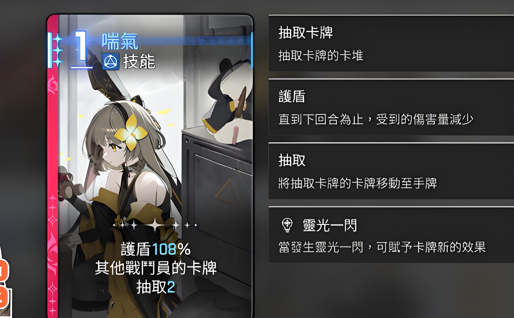 3、靈光一閃衍生卡牌實用性強,喘氣一費提供百分百護盾并抽取其他戰斗員關鍵牌,衍生一常用衍生二側重輸出衍生三零費上盾。