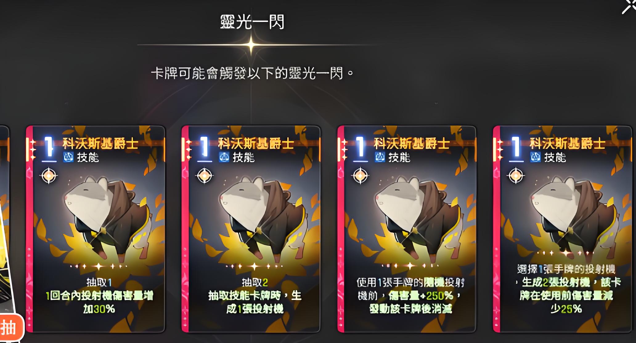 2、核心技能準備發射一費即可觸發,每回合自動生成一張投射機,回合結束后自動蒸發觸發效果,可享受額外行動增傷和卡牌潛能。
