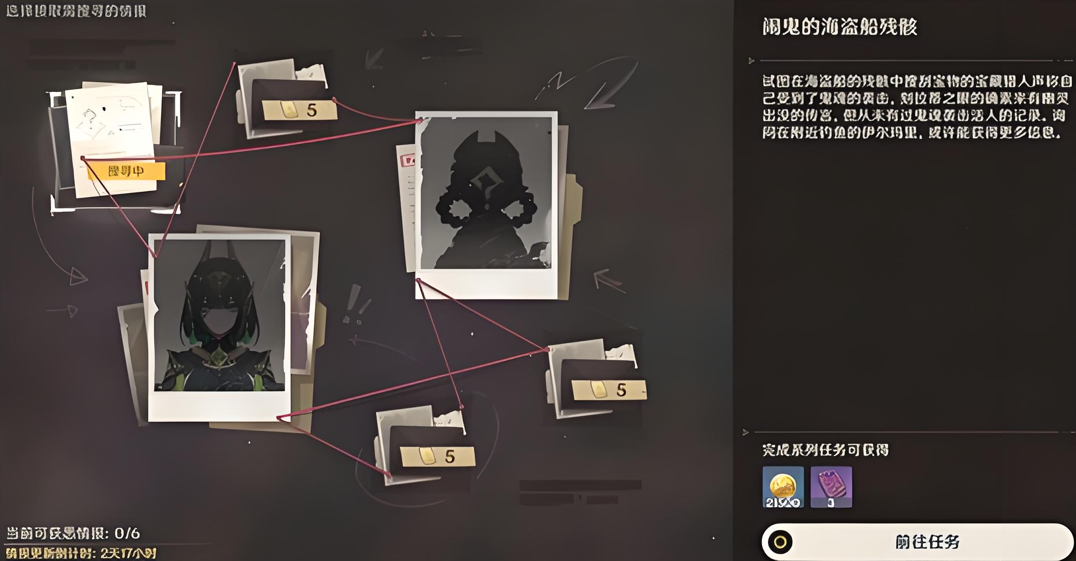 5、任務推進無順序,已接任務可保留后續完成,集齊二十情報可完成全部任務解鎖最終章節。