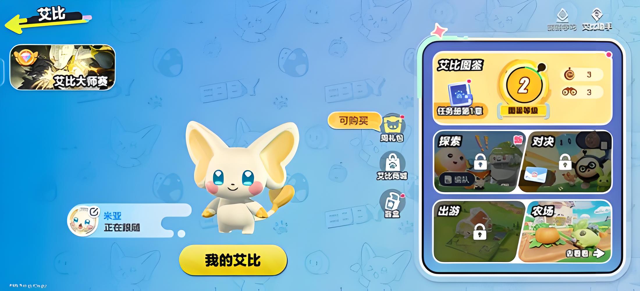 2、艾比為核心精靈角色外形技能各具特色,初始伙伴米亞有白黃顏色外觀尖耳造型,所有艾比均可跟隨玩家,陪伴參與各類活動進程。