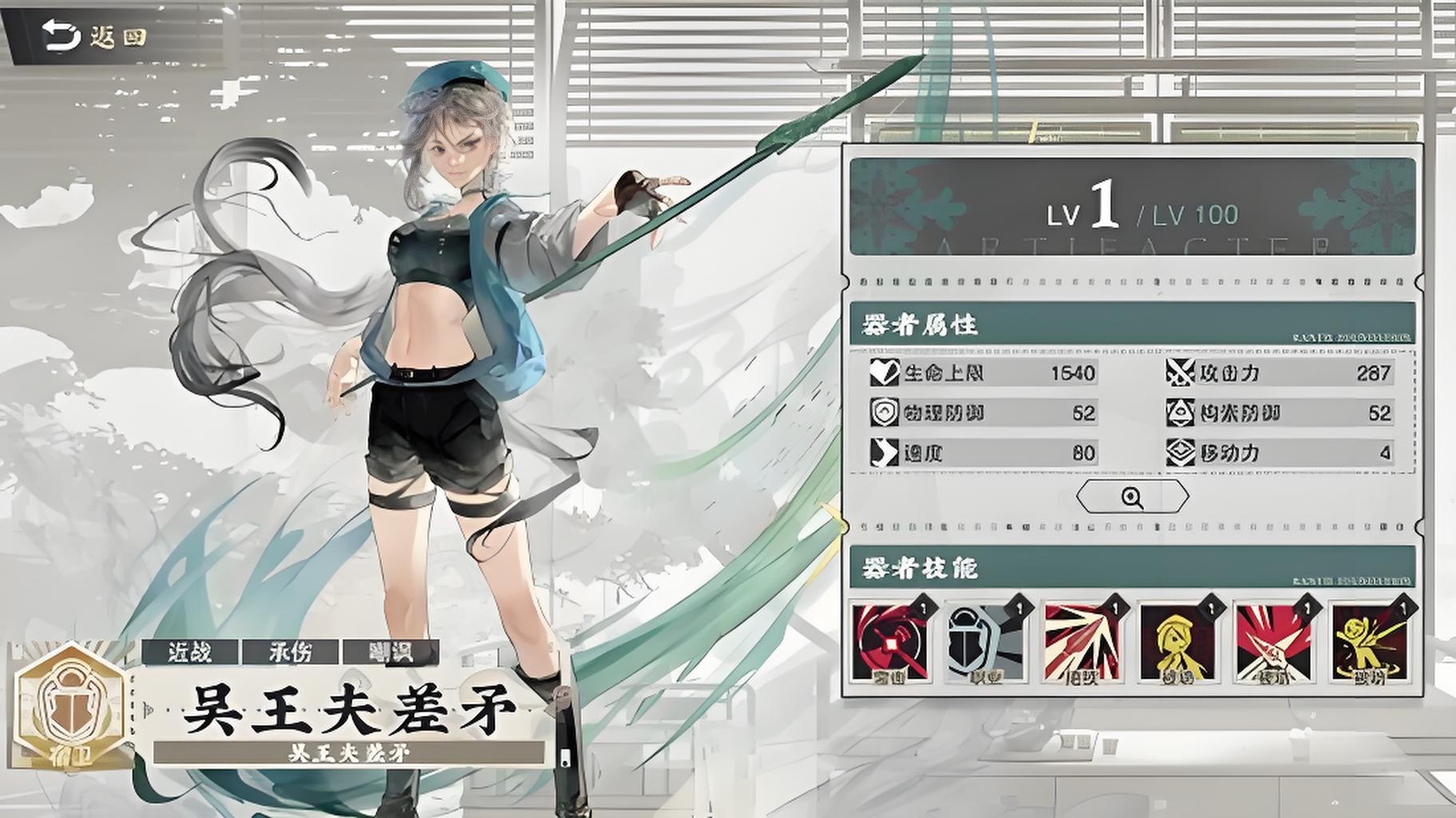 物華彌新中吳王夫差矛是宿衛職業的驕品器者,定位近戰承傷與嘲諷坦度型,依靠技能機制和深造加成成為隊伍前排核心。其基礎屬性均衡,深造后防御和生命值大幅提升,搭配適用武器與詞條可強化格擋與抗傷能力。下文將從基礎屬性技能搭配深造方向實戰等方面展開。