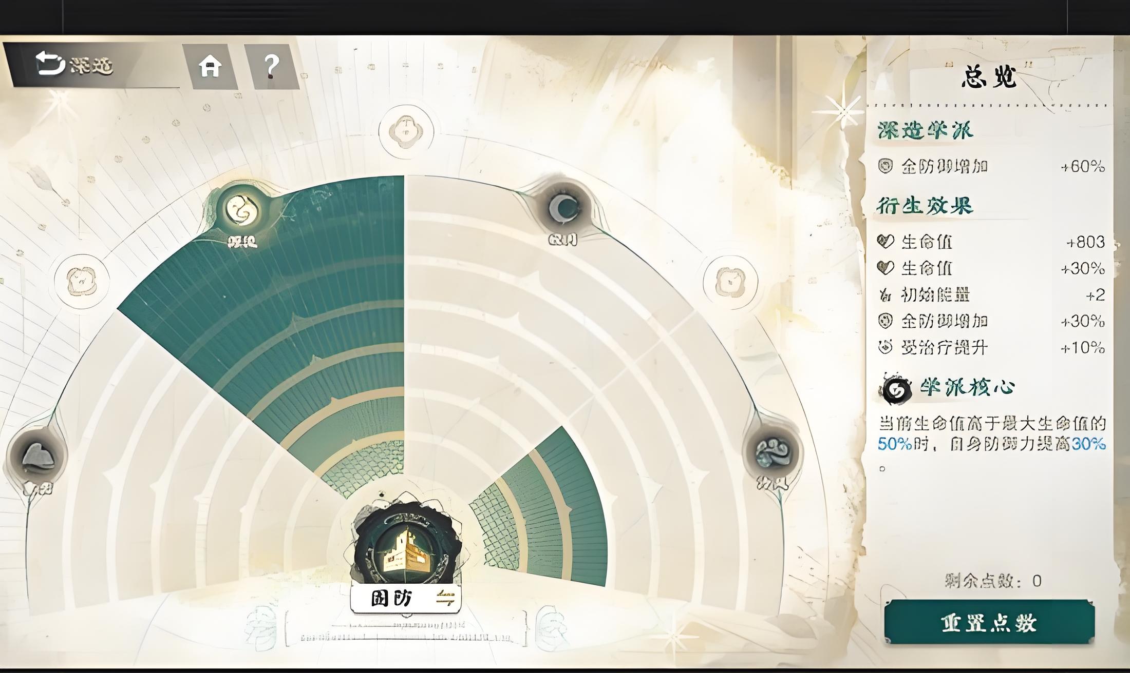 3、深造方向明確,特定源流學派帶來防御相關加成,同時提升生命上限與受治療量,補充初始能量,進一步強化生存續航能力。