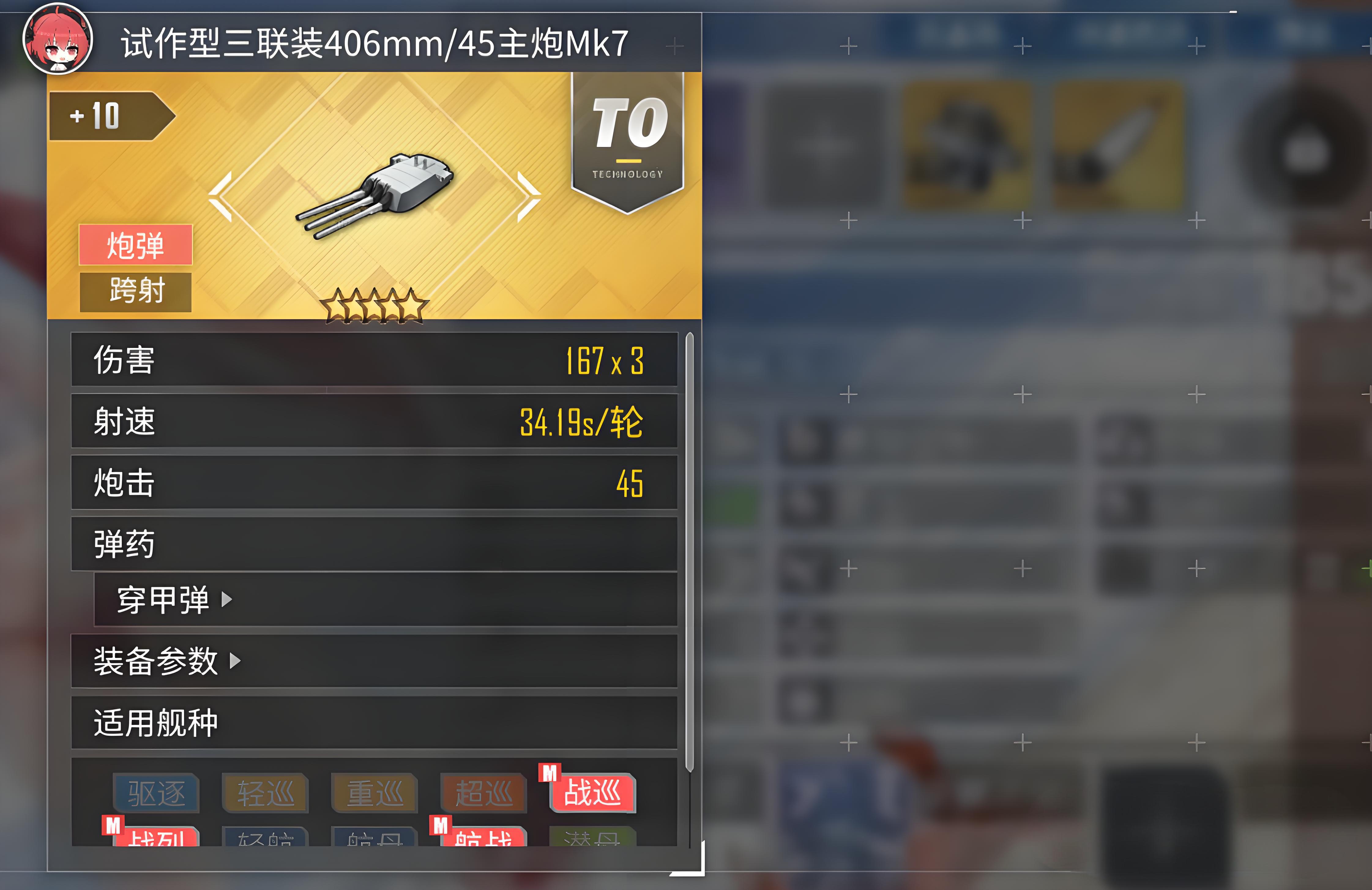 2、屬性上炮擊值中規中矩但主炮效率達145%,裝填148命中64機動23幸運72,防空屬性較低是明顯短板需注意規避。