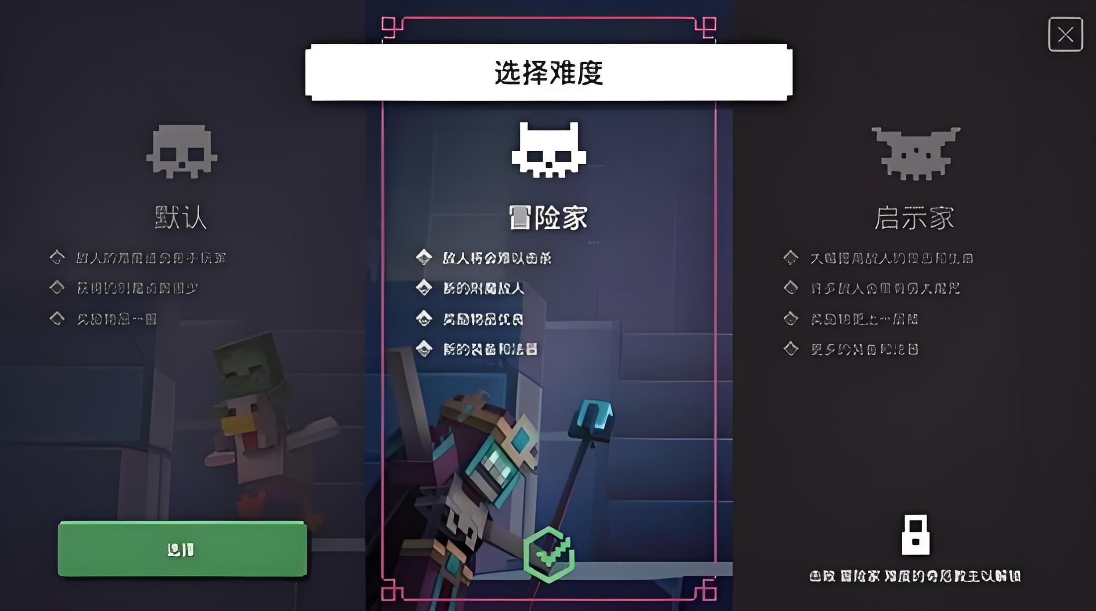 3、設有默認冒險家啟迪家三個難度層級,逐步解鎖且難度遞增,高難度關卡敵人數量生命值攻擊力均有提升。