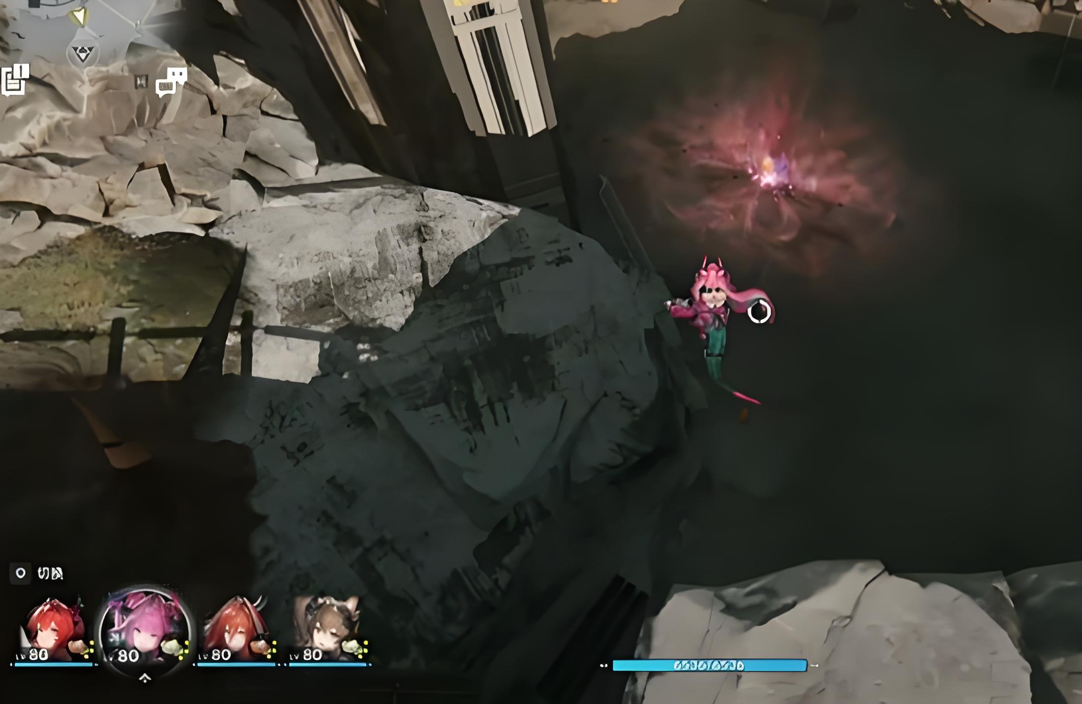 2、谷地通道分布,多在通道兩側地形開闊處,入口直行首個拐角左側石壁后有點位,中段巖壁附近間隔分布,終點左側高臺需攀爬才能觸發。