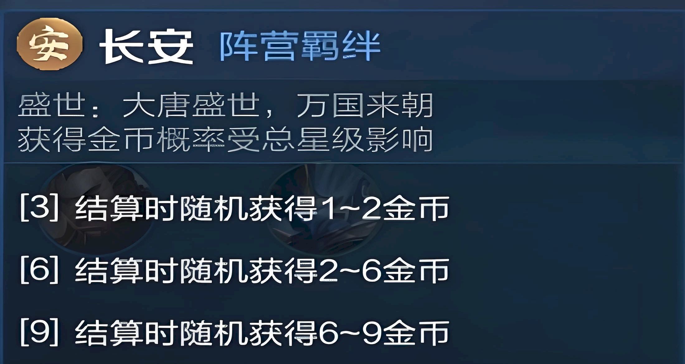 1、長安陣營側重經濟積累,在結算時隨機獲得金幣,金幣獲取概率關聯總星級,為后續英雄兌換和陣容升級提供經濟支撐。