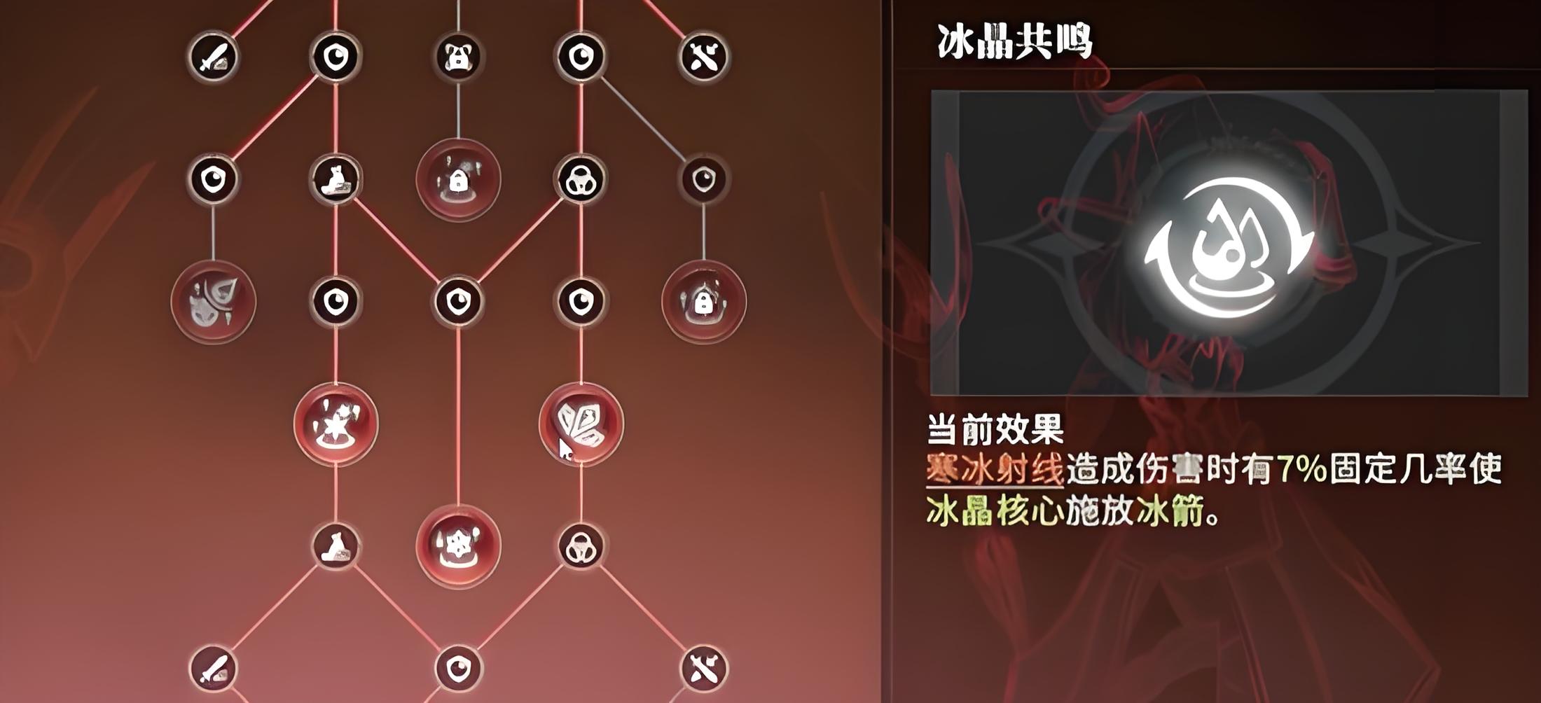 2、冰晶共鳴作為輔助技能觸發自動鎖定冰箭,無需手動瞄準命中率高,能補充傷害提升輸出密度,在分散敵人場景中可有效填補輸出空缺。