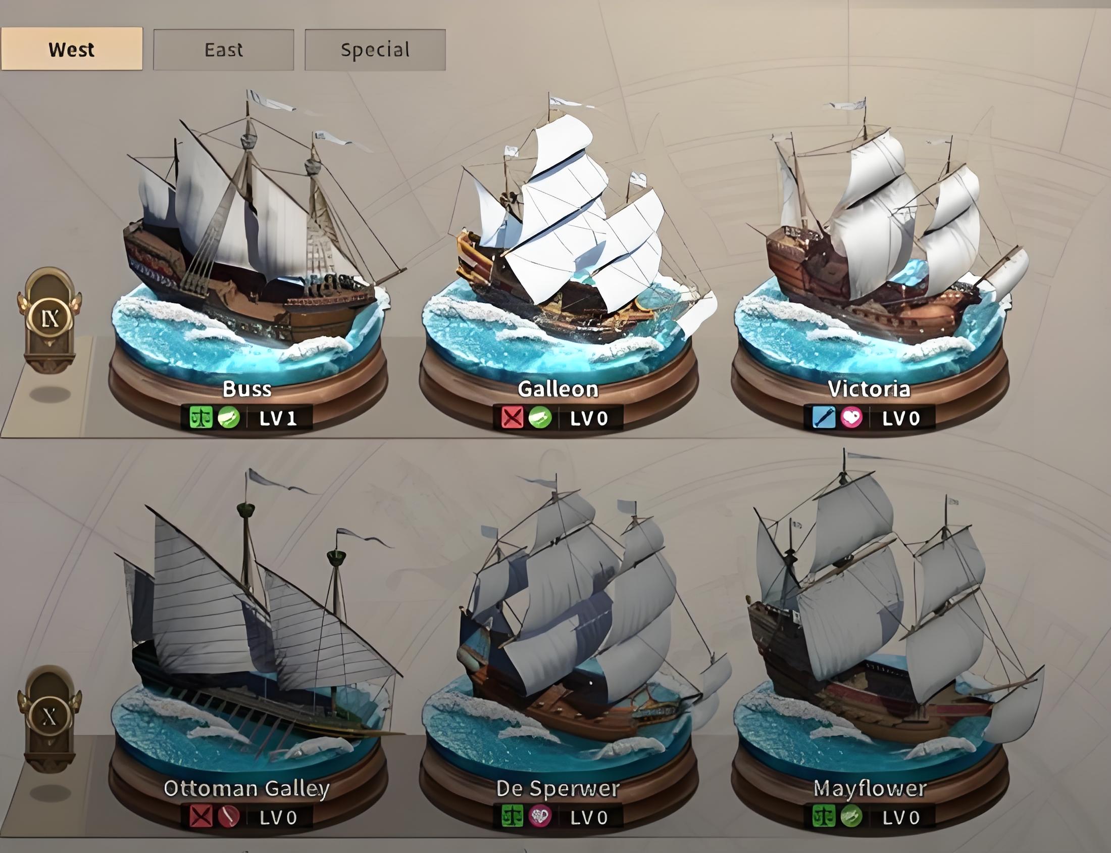 2、明確造船體系避免分散,系統分東方船與西方船,貿易傾向選西方船,海戰擴張傾向選東方船,集中資源才能快速突破十級造船門檻。