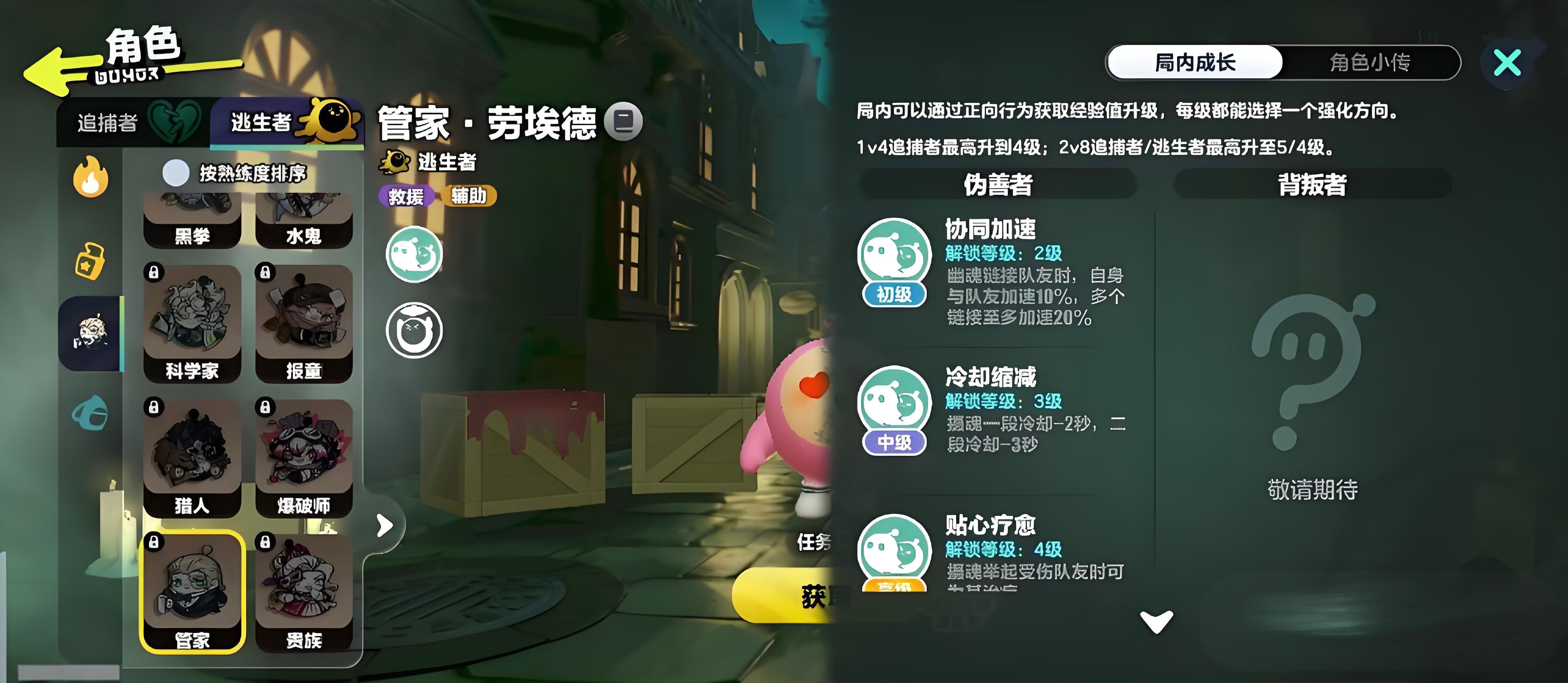 2、核心技能協同加速,可為自身及隊友提供10%移速加成,最多疊加至20%,追捕者逼近時能大幅增強逃脫效率。