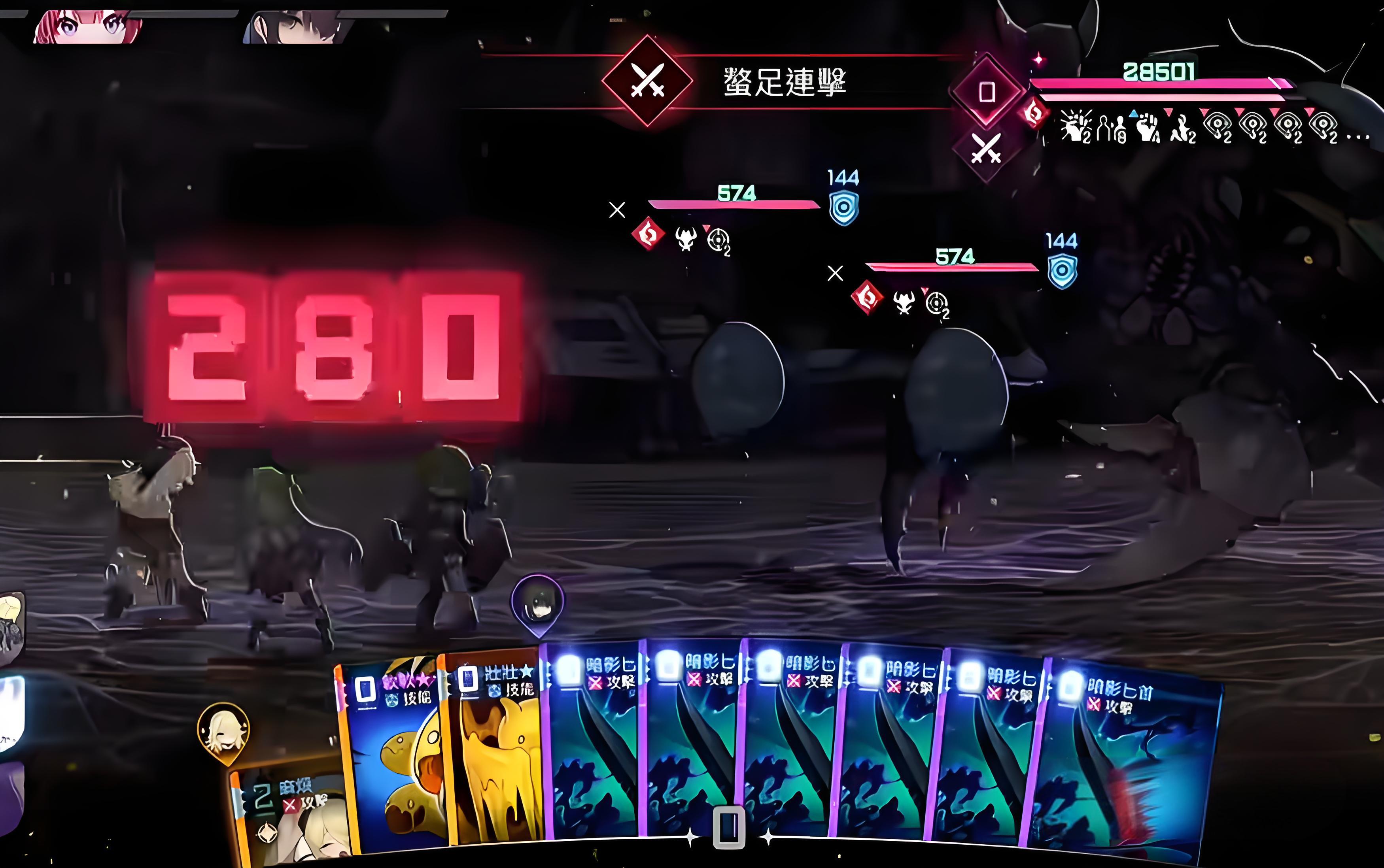 4、刀妹主要釋放基礎攻擊卡牌輸出傷害,修女和梅林根據隊伍血量調整,血線健康時輸出,狀態不佳時啟用輔助。