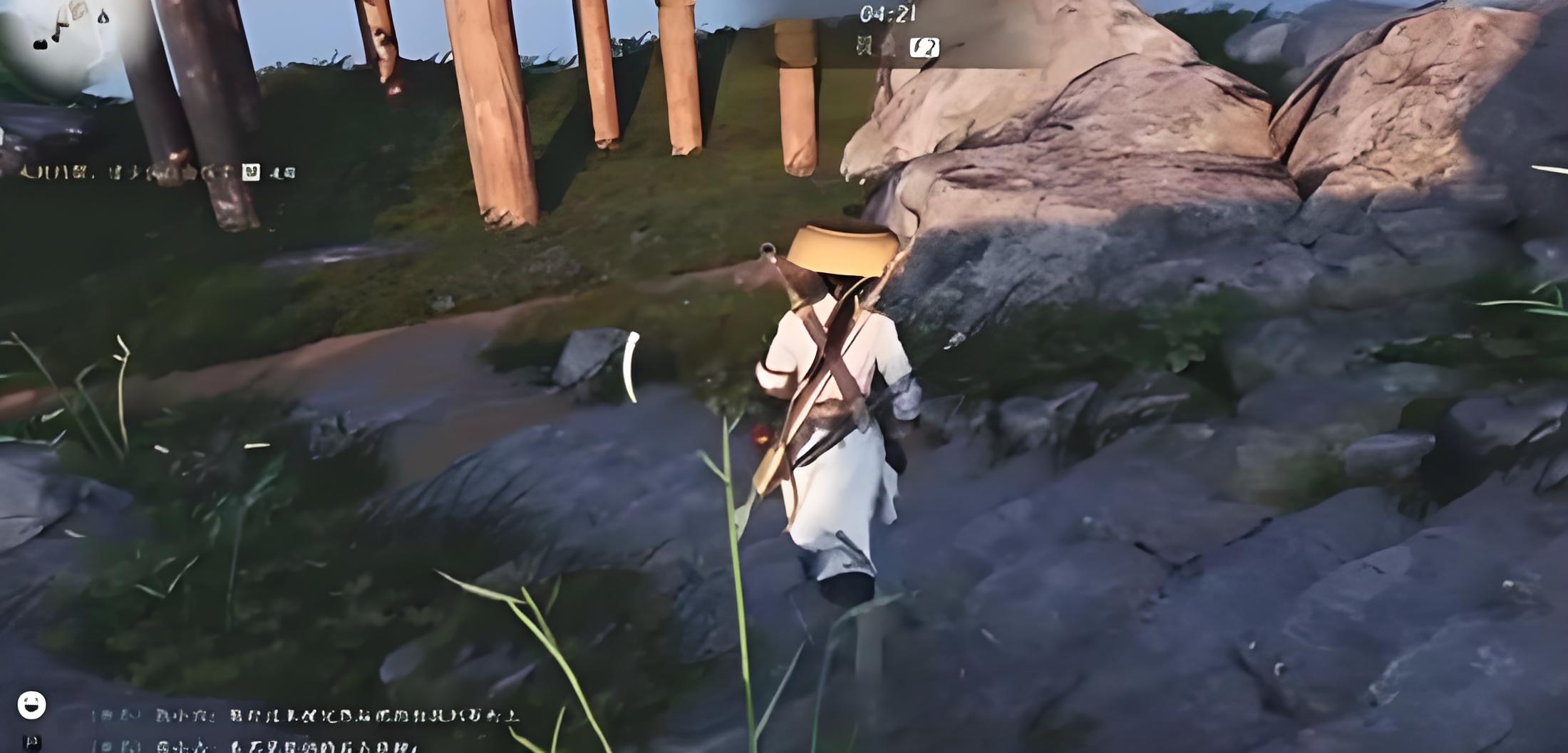 2、跳下懸崖后在底部區域仔細搜尋尸體,從中找到遺物道具,觸發后續指引后按地圖提示繼續前行。