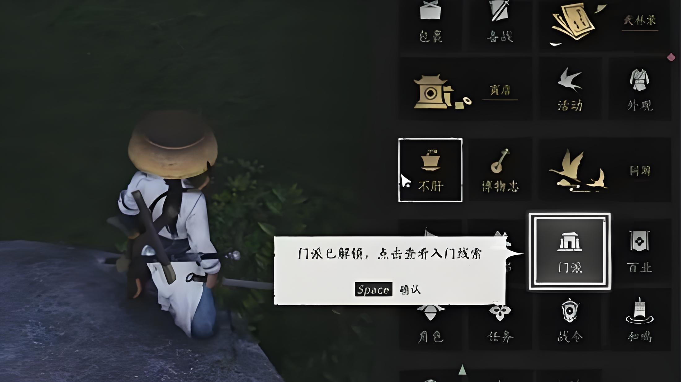 1、前往佛光頂地圖的梅花樁區域,持續向前行進直至抵達懸崖邊緣,隨后縱身跳下即可觸發入門線索。
