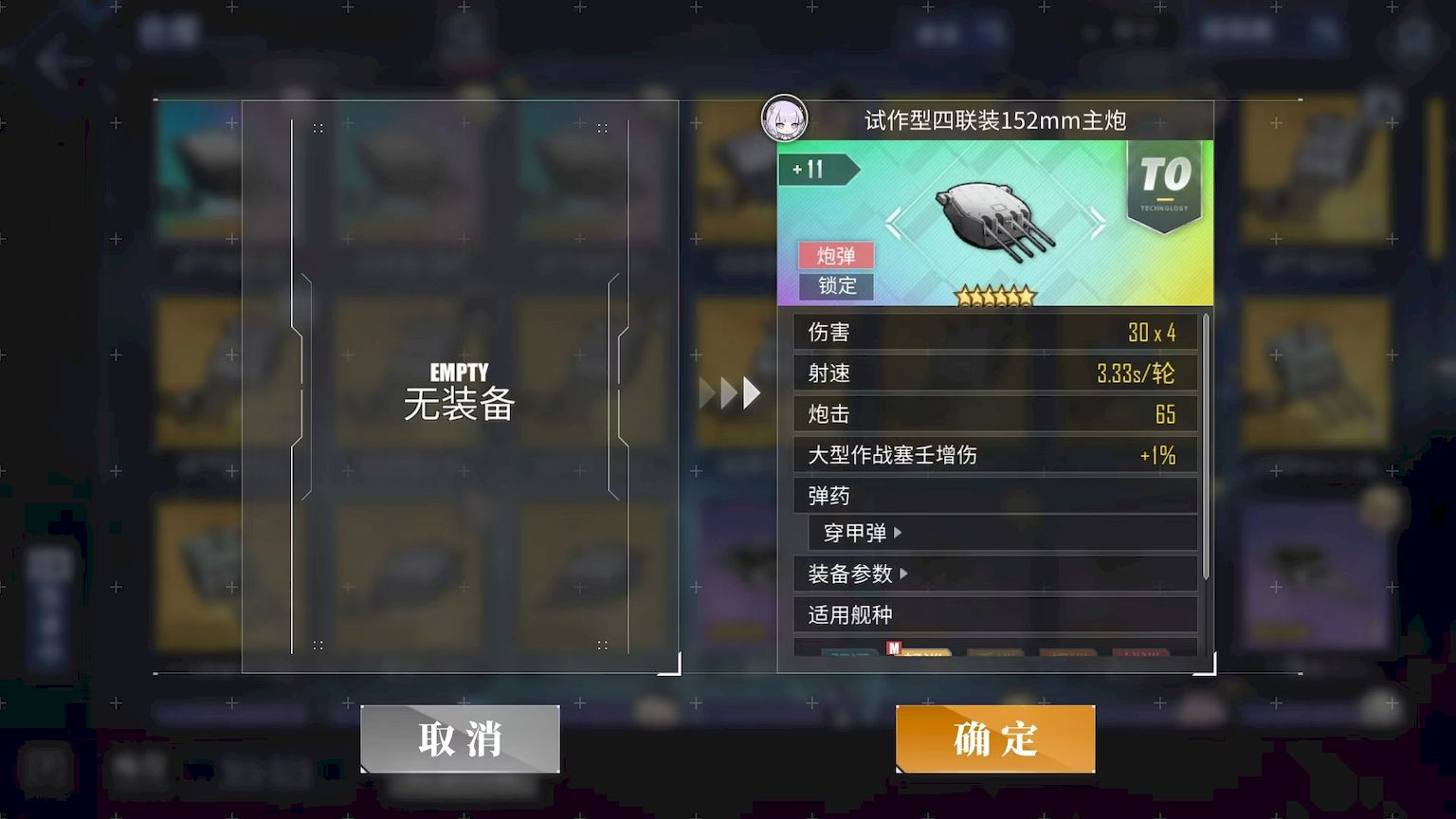 5、配裝選常規輕巡裝備,主炮優先彩四聯152,無則替代,副炮用B13,防空用雙聯113,設備搭維修工具、金舵機。