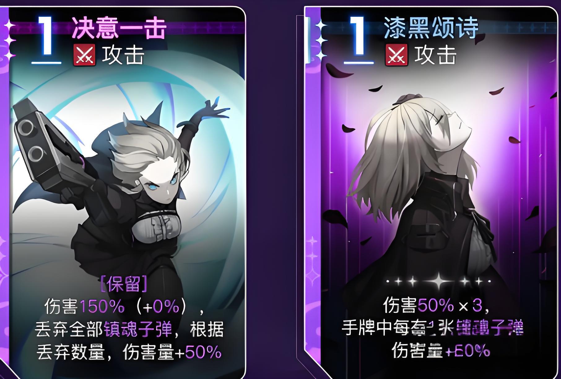 3、靈光一閃卡牌以子彈機制為核心,部分需丟棄子彈增傷,部分按手牌子彈數量增傷,不同卡牌形成多樣輸出路徑。