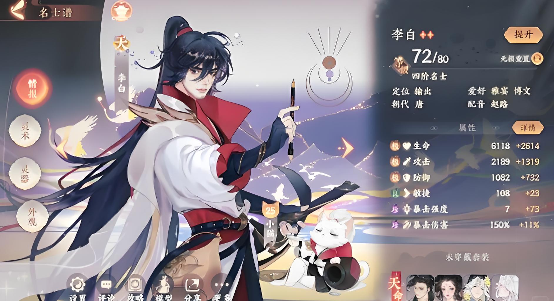 忘川風華錄中李白是熱門輸出型名士,依靠高暴擊高傷害特性成為眾多玩家培養首選。其技能機制圍繞劍意詩意疊加,兼具輸出與生存能力,不同培養方向適配多樣戰斗場景。本文將從基礎屬性核心技能培養推薦等方面展開,為玩家呈現全面實用的李白培養指南,幫助合理規劃資源提升戰力。