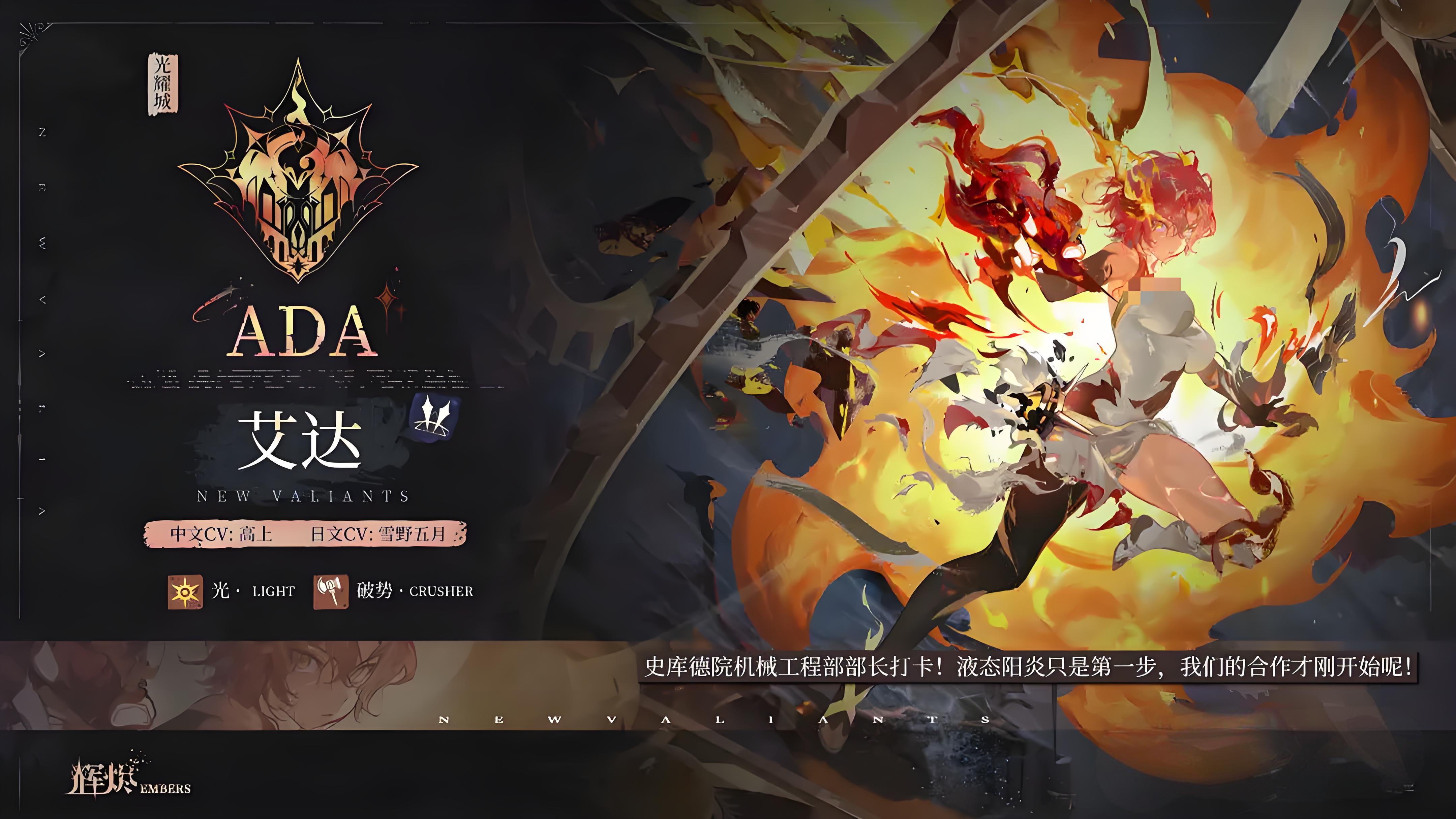 輝燼艾達是全新光屬性破勢角色,精致面龐搭配紅火短發,外形性感干練且極具吸引力,戰斗風格凌厲暴力備受玩家期待。角色核心聚焦削韌與高額輸出,多個技能擁有多重釋放形式,戰斗中可靈活調整策略。本次將詳細說明其被動主動技能效果及觸發機制,幫助玩家掌握運用方式充分發揮戰力。