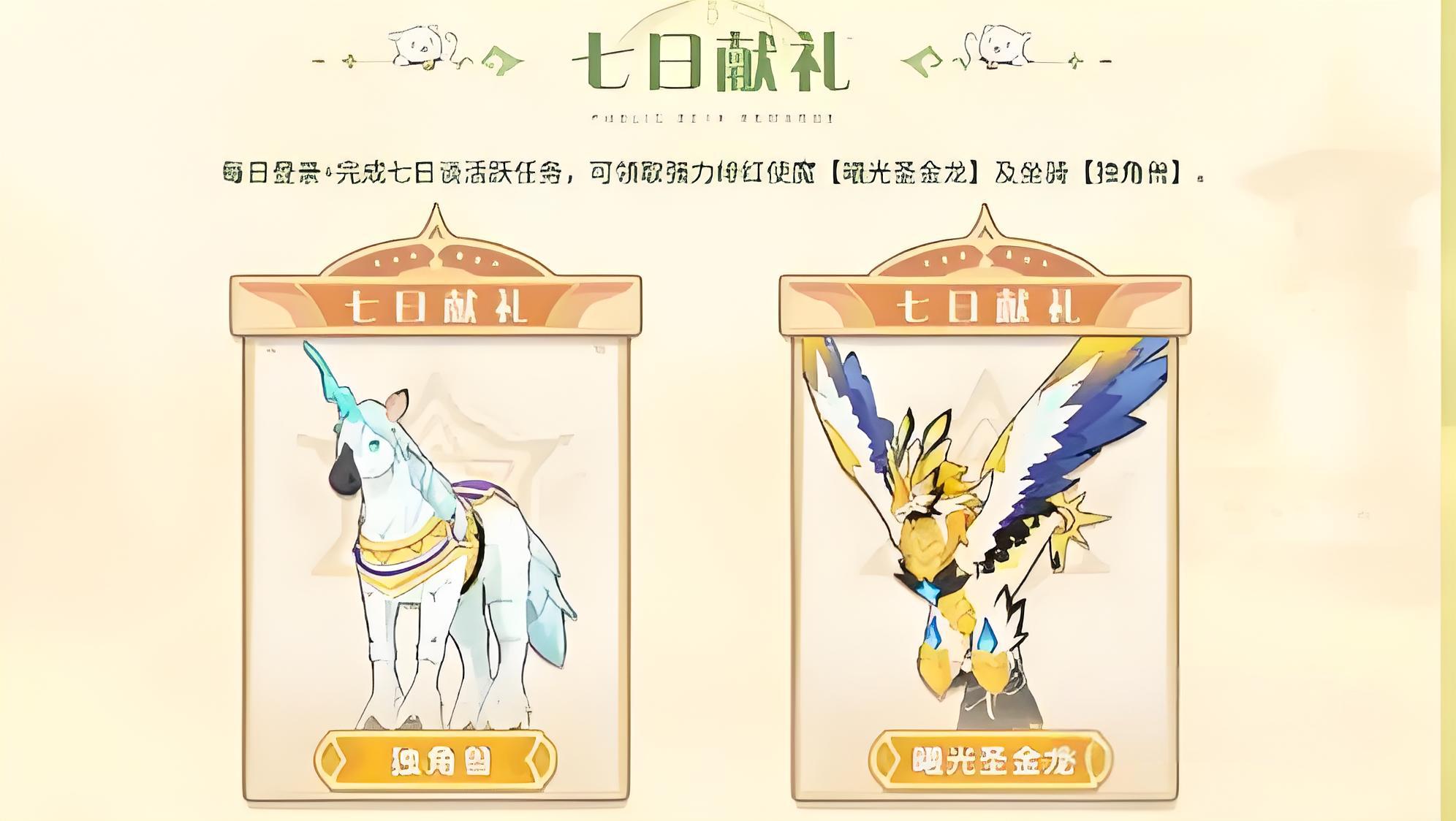 4、七日登錄活動每日完成活躍度任務,領取稀有戰力寵物,能穩定收集命運之羽,提升資源儲備效率。