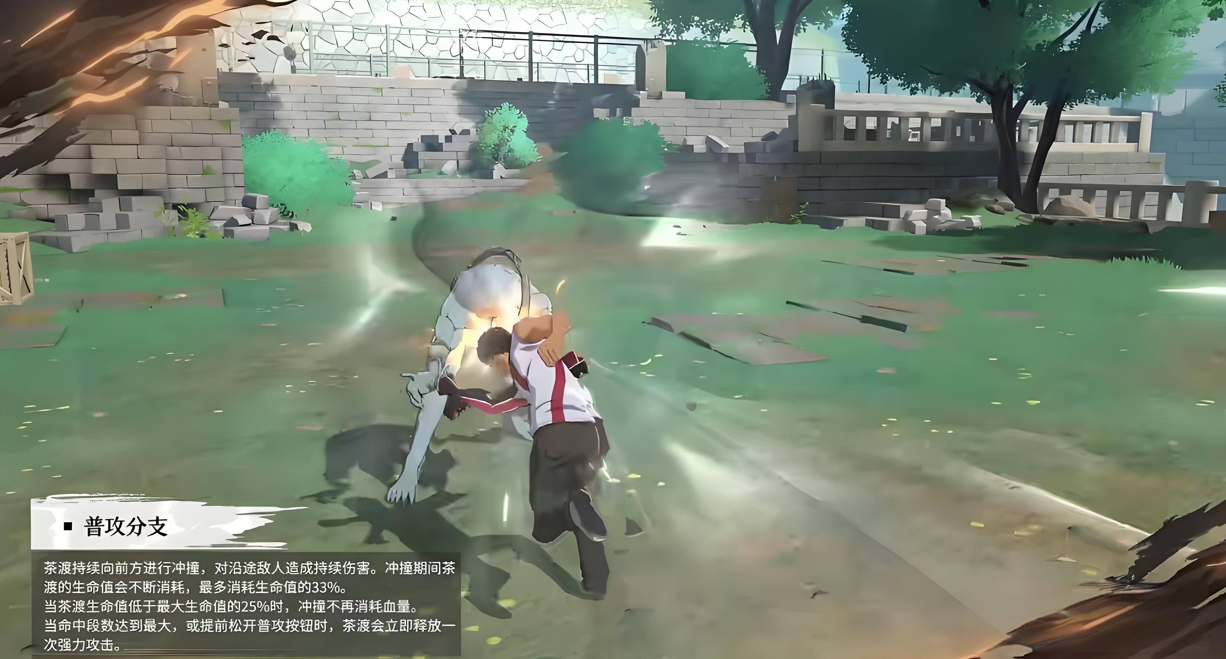 2、普攻包含五段攻擊可積攢靈壓,第四段后撤步能吸附敵人實現無限連擊,長按普攻觸發沖撞分支并造成持續傷害。