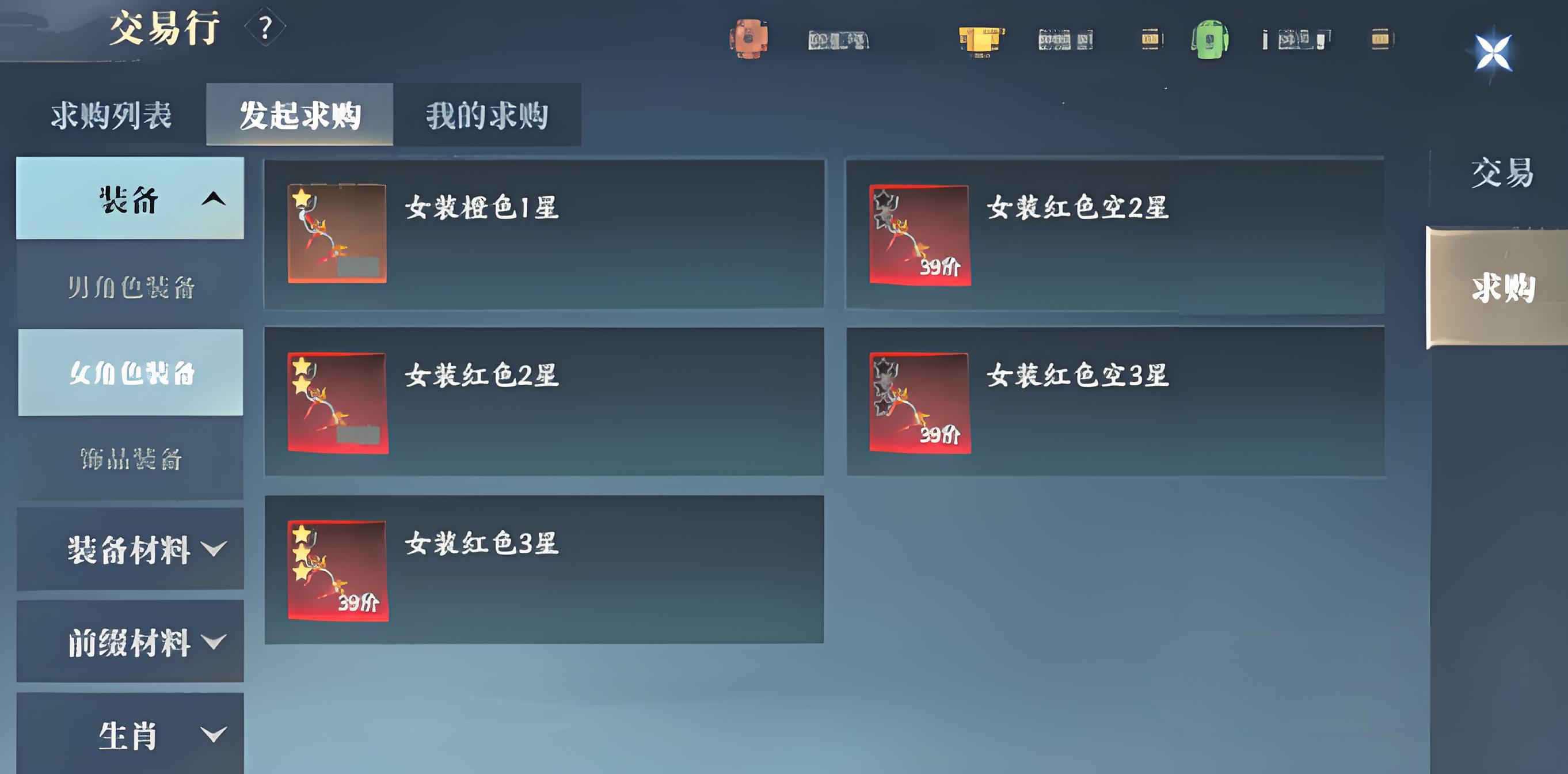 4、交易行可選購求購出售非綁定道具,價格隨供需調整,上架有數量限制,賣出商品系統收取百分之十費用。
