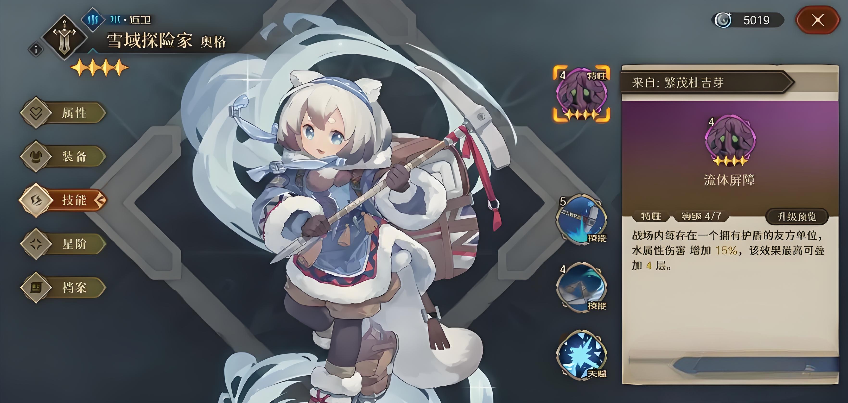 2、主角為多功能關鍵單位,可提供護盾與攻擊加成,還能加速全隊節奏并削弱敵方防御,其流體屏障可疊加水屬性傷害。