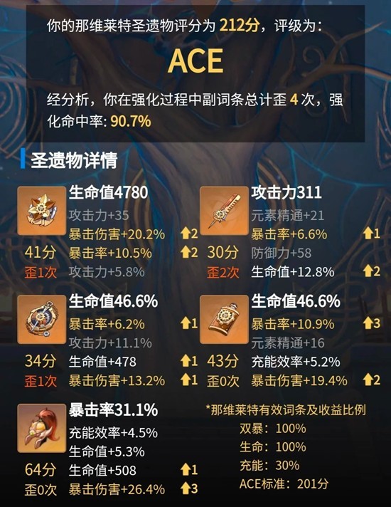4、圣遺物優先逐影獵人四件套,主詞條按生命攻擊生命水傷爆傷排序,副詞條優先爆傷其次暴擊率再到生命與充能。