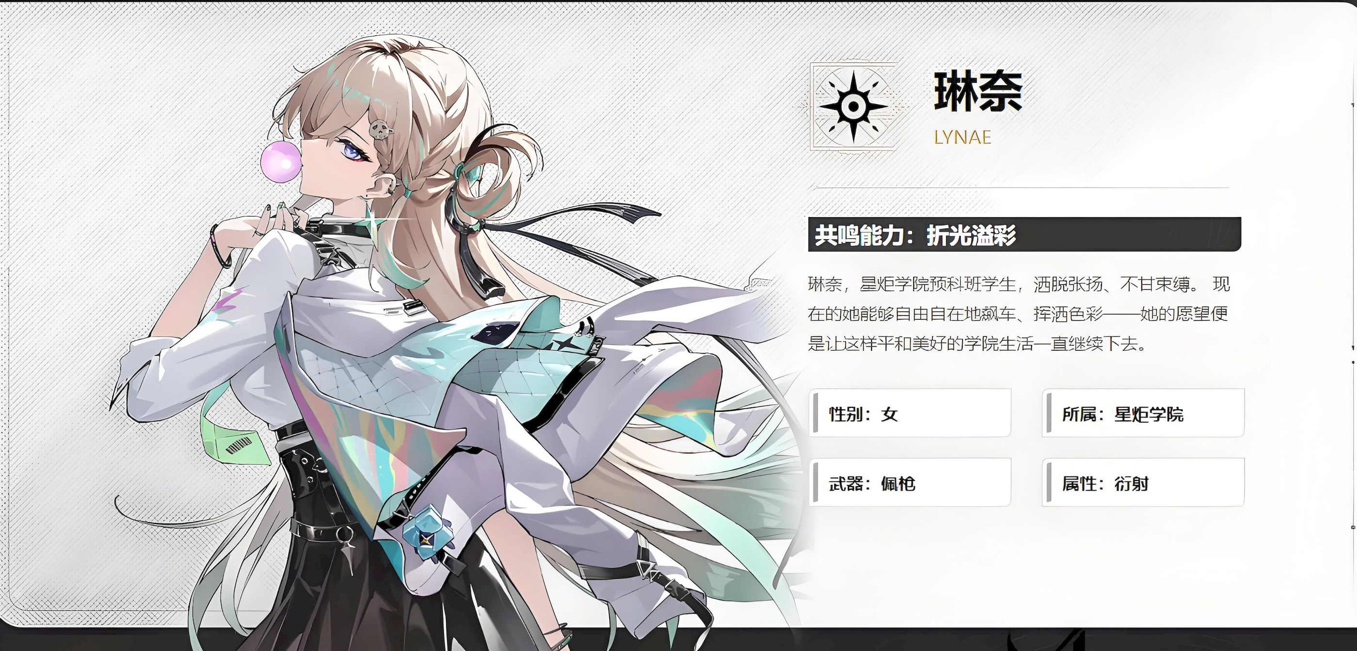 1、琳奈隸屬于星炬學院預科班,性格灑脫張揚且不甘束縛,日常鐘愛飆車與揮灑色彩,內心盼著平和學院生活能長久延續。