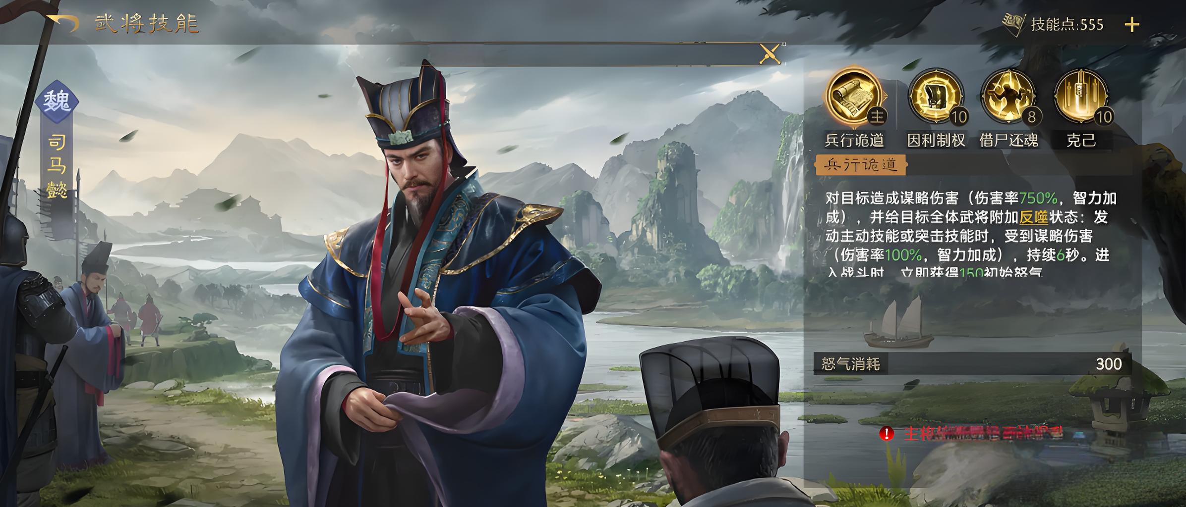 1、核心武將選定司馬懿為主將,其自帶反噬效果可讓敵方主動進攻時承受持續傷害,核心技能借尸還魂能對中毒目標觸發額外謀略傷害且附帶回血。