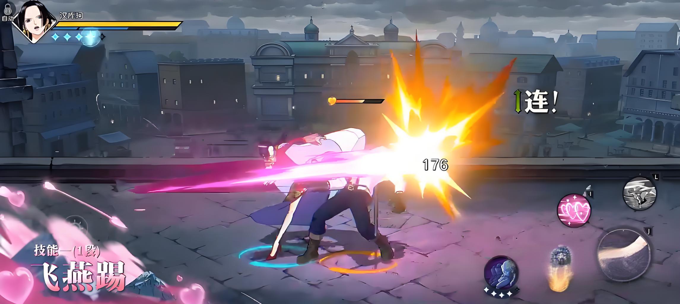 2、技能1飛燕踢分點按長按,點按有三段攻擊且下劈為抓取,長按可強化技能并附加部分石化還能銜接普攻。