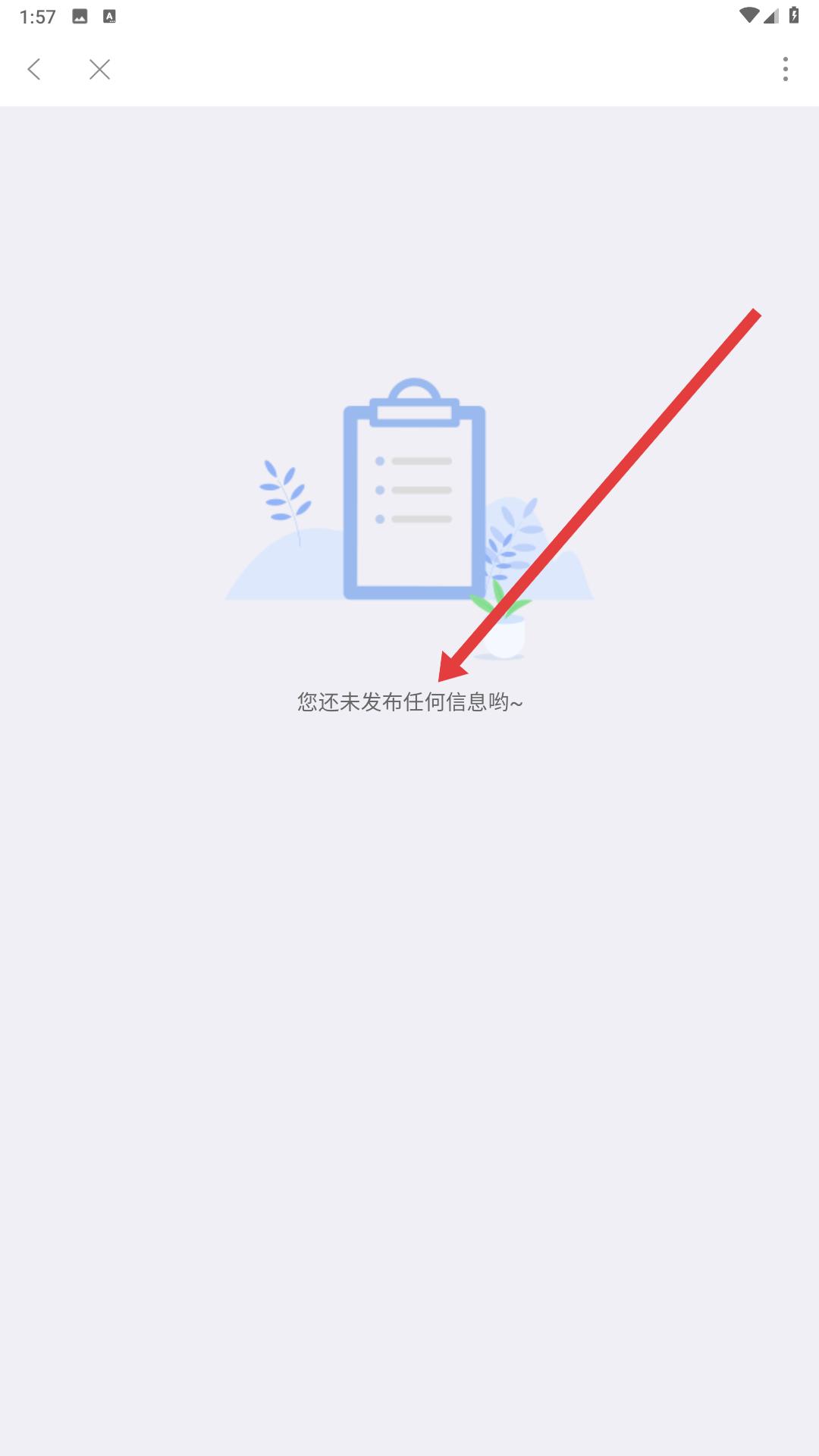 4、若還未發布過失物招領信息,在相關頁面會顯示您還未發布任何信息喲,提醒可去發布信息幫助他人或尋找失物。