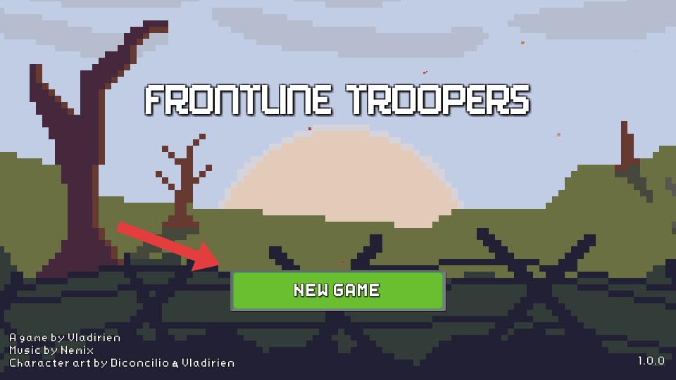 1、進入游戲,看到FRONTLINE TROOPERS標題界面,點擊NEW GAME按鈕,開啟游戲,進入將軍選擇環節。