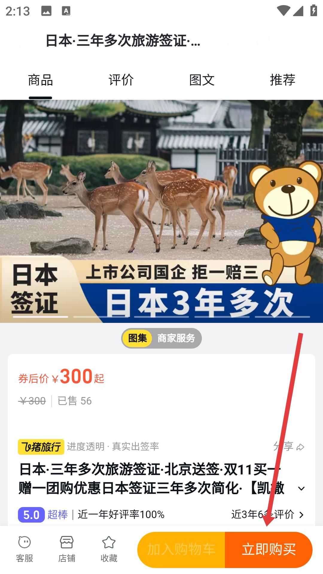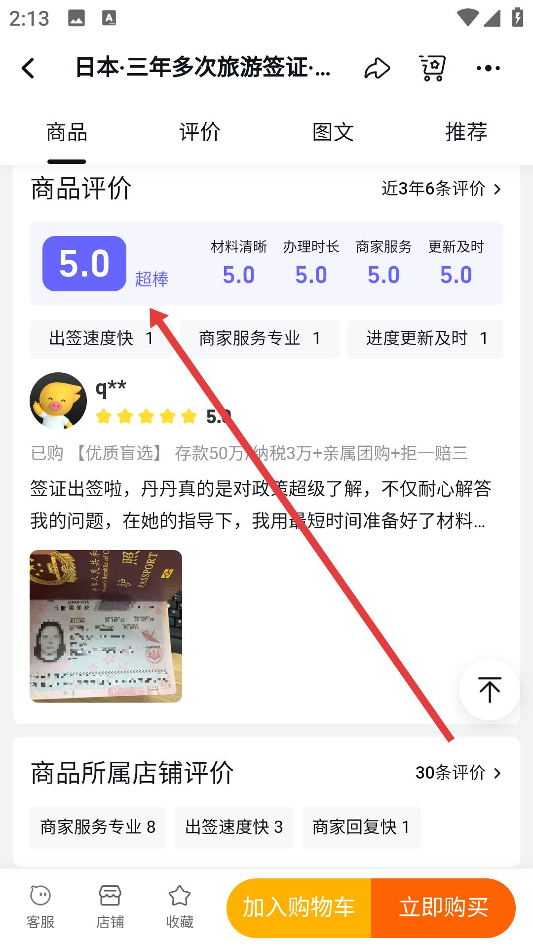 2、在日本三年多次旅游簽證商品詳情頁面,查看商品的基本信息,如價格、已售數量等,點擊立即購買按鈕,進入商品評價查看頁面。
